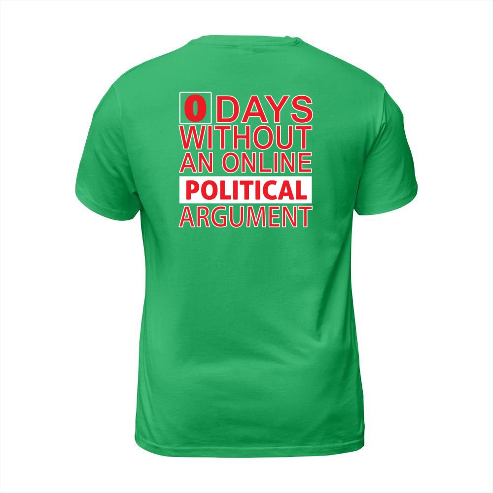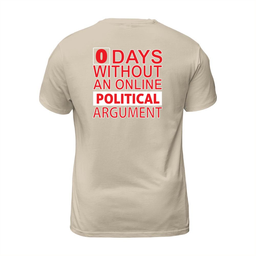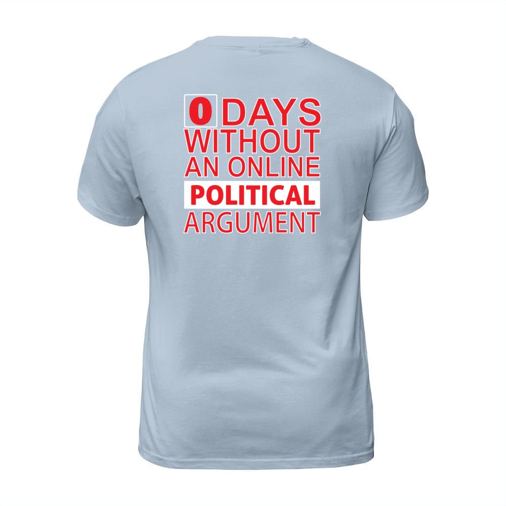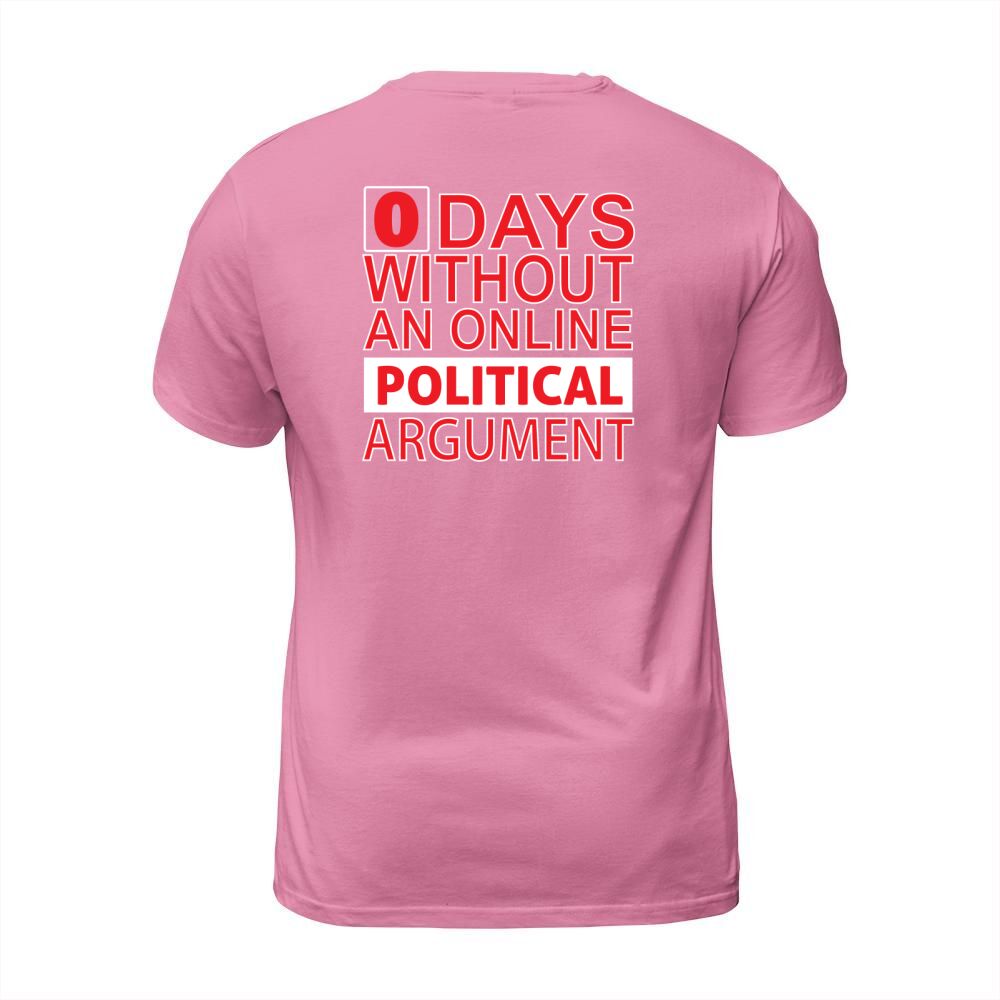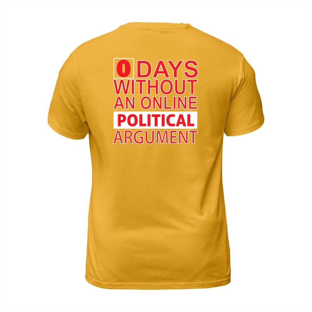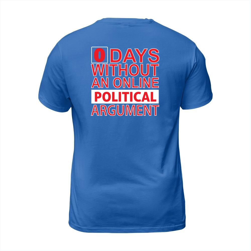 Shop 0 Days Without An Online Political Argument T-Shirt Unisex custom made just for you. Available on many styles, sizes, and colors.