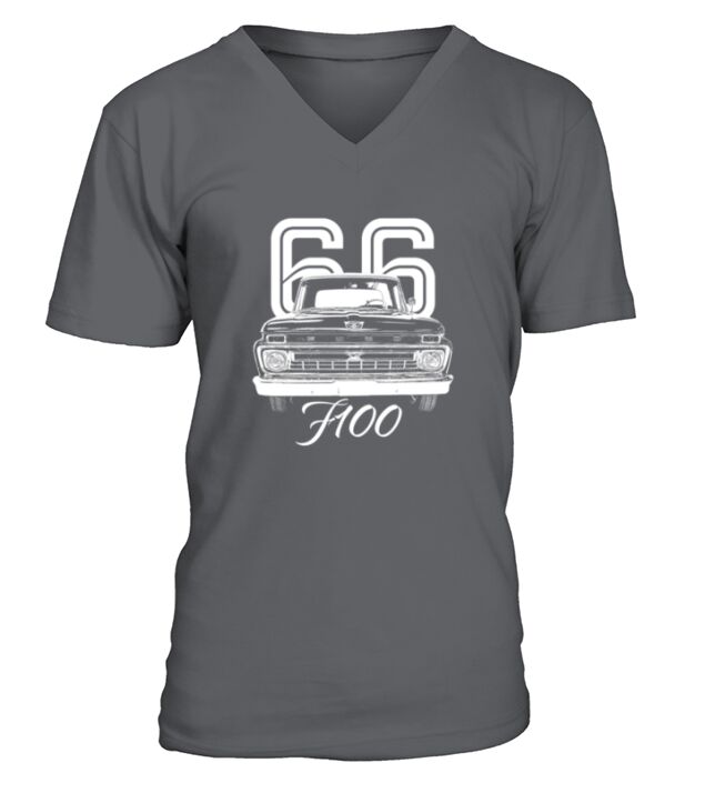 Shop 1966 F100 Grill View with Year and Model Name Charcoal Grey V-Neck T-shirt custom made just for you. Available on many styles, sizes, and colors.