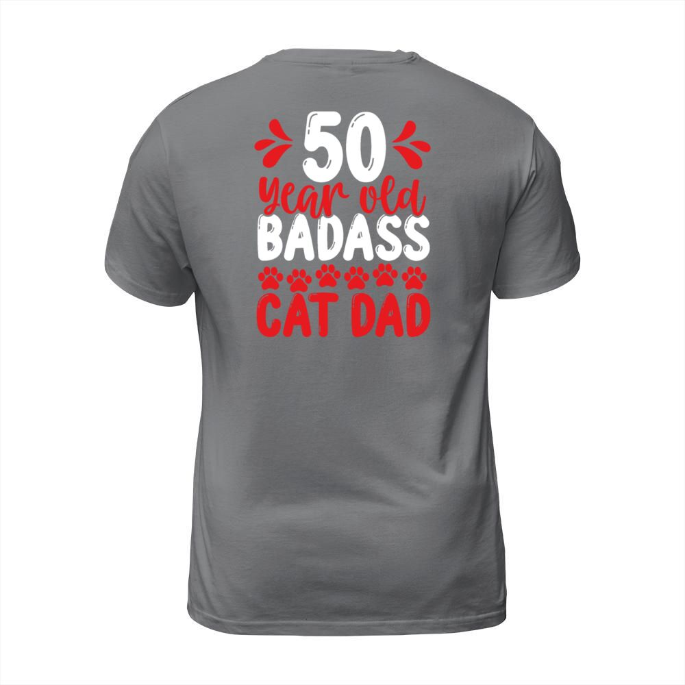 Shop 50 Year Old Cat Dad Funny Cat Father 50th Birthday T-Shirt Unisex custom made just for you. Available on many styles, sizes, and colors.
