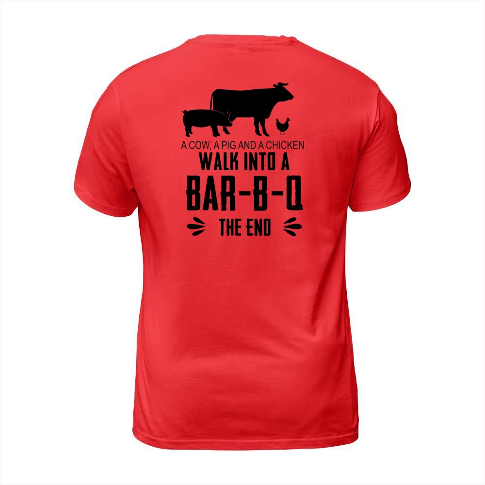 Shop A Cow, A Pig and A Chicken walk into a Bar-B-Q the end T-Shirt T-Shirt Unisex custom made just for you. Available on many styles, sizes, and colors.
