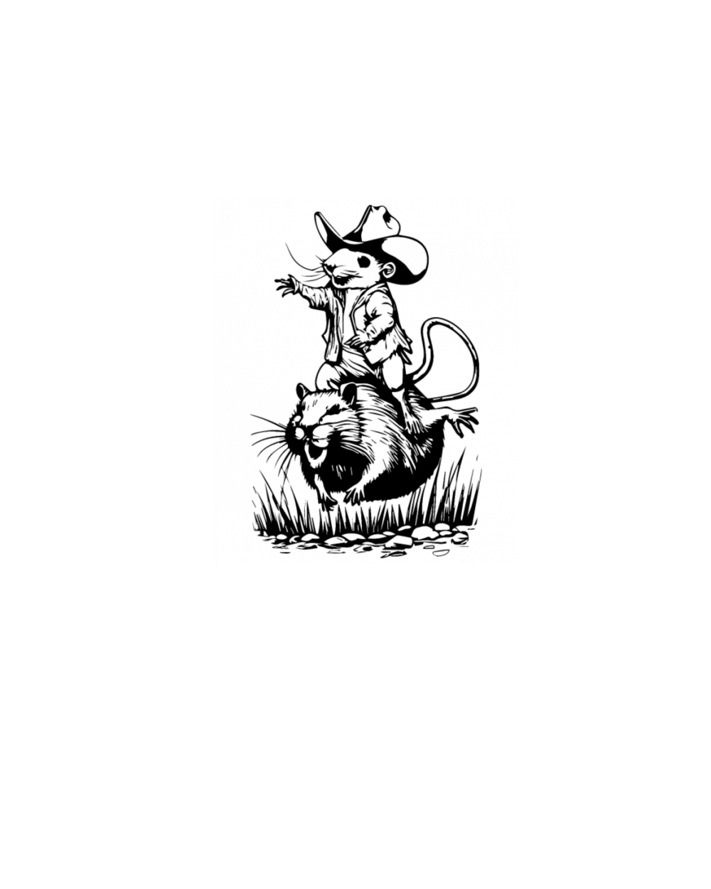 A rat in a cowboy hat jumping on Capybara