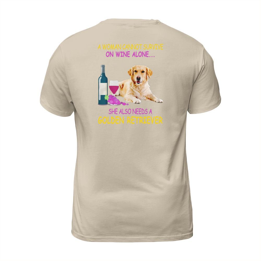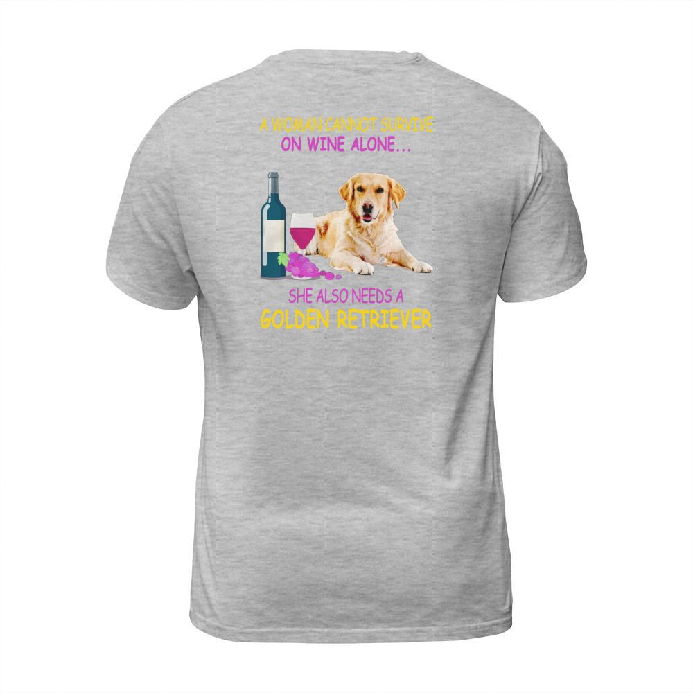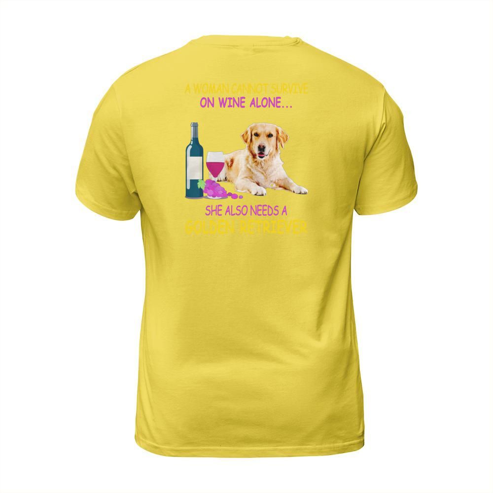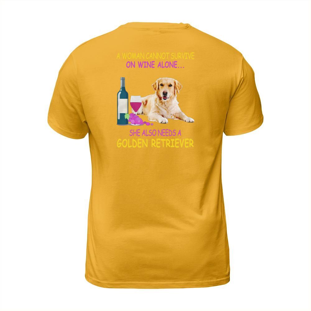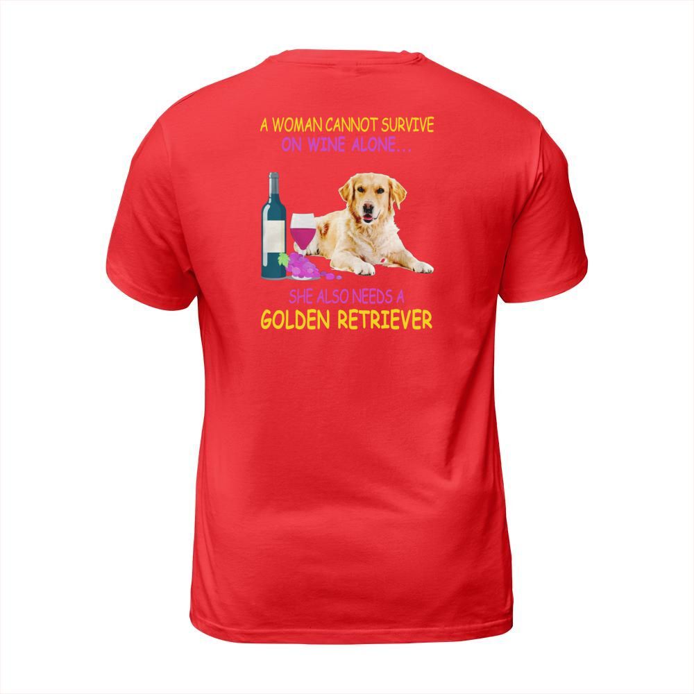 Shop A woman cannot survive on wine alone Golden Retriever T-Shirt Unisex custom made just for you. Available on many styles, sizes, and colors.