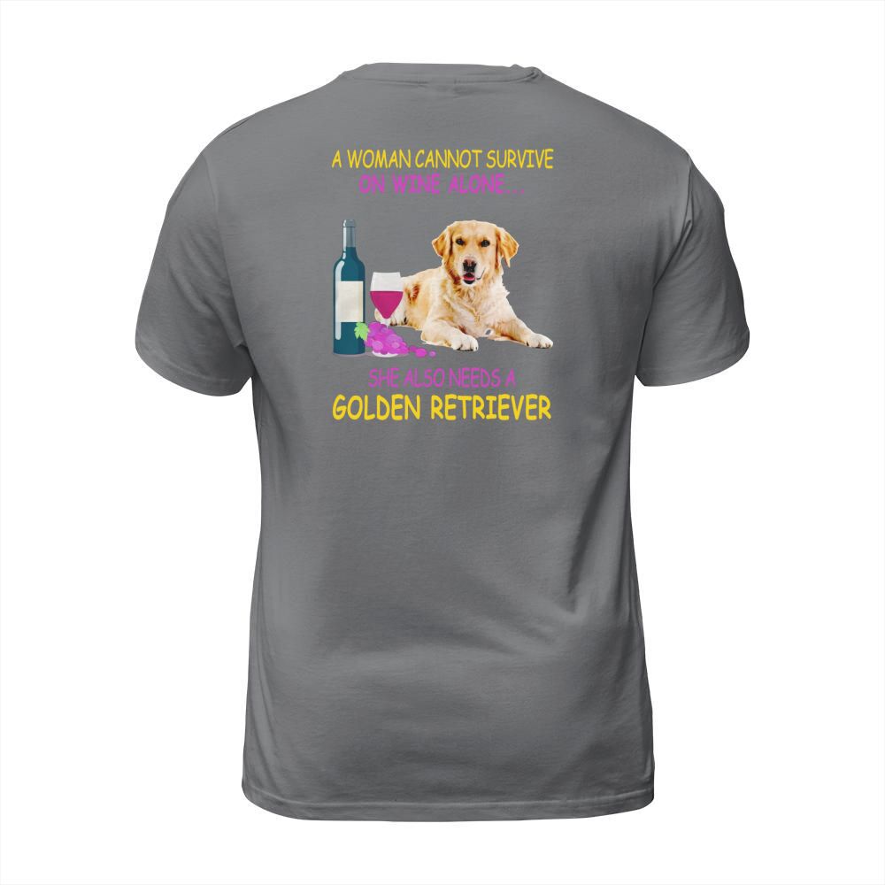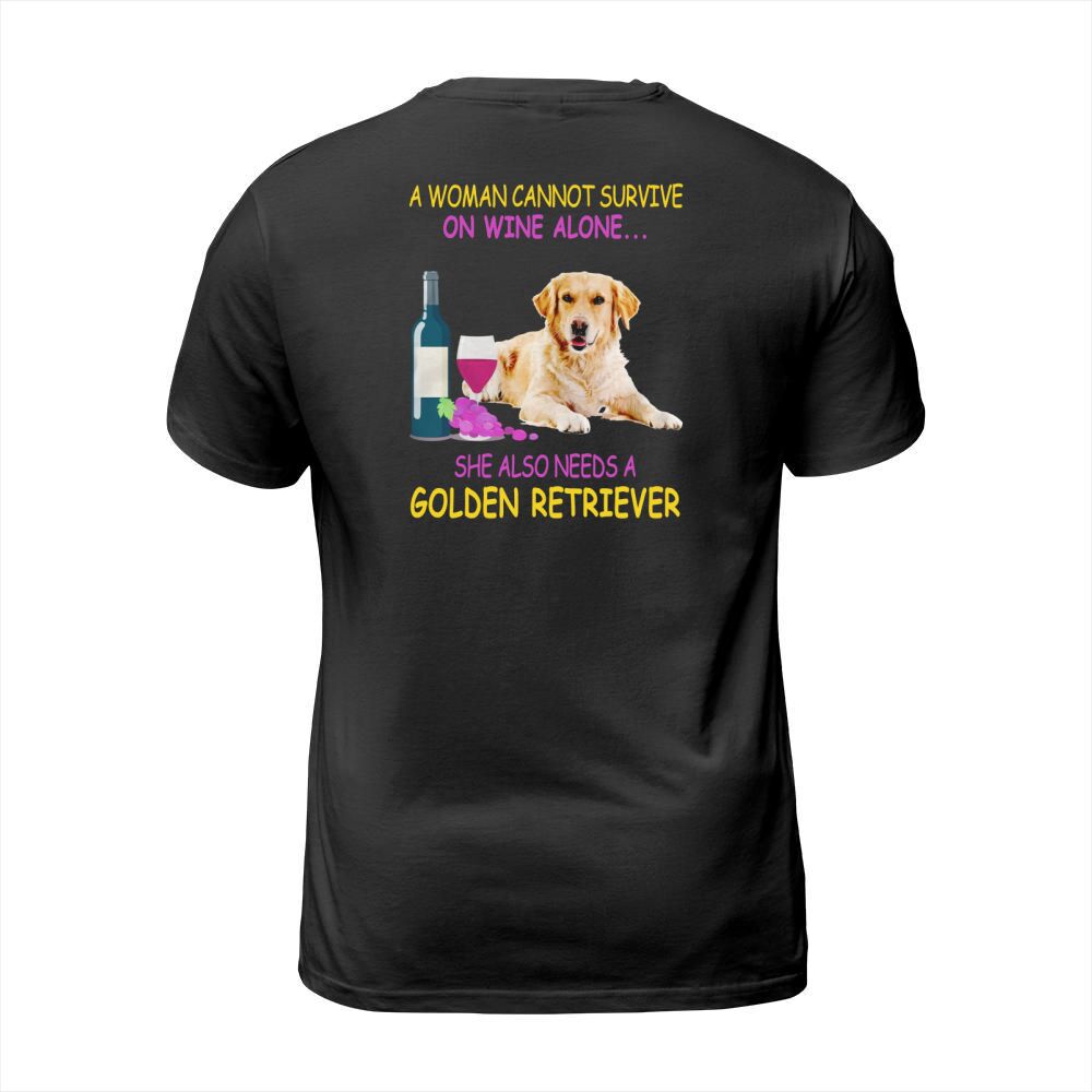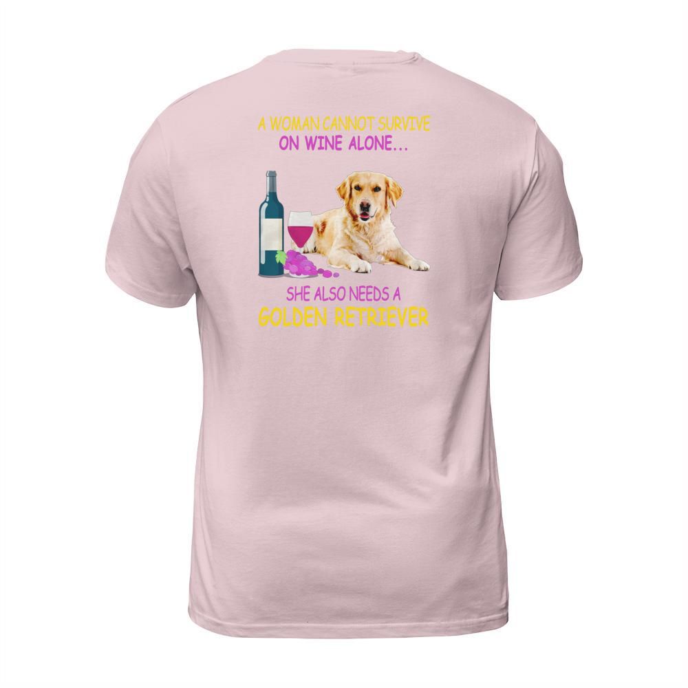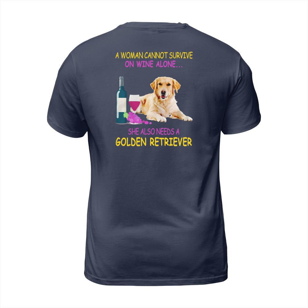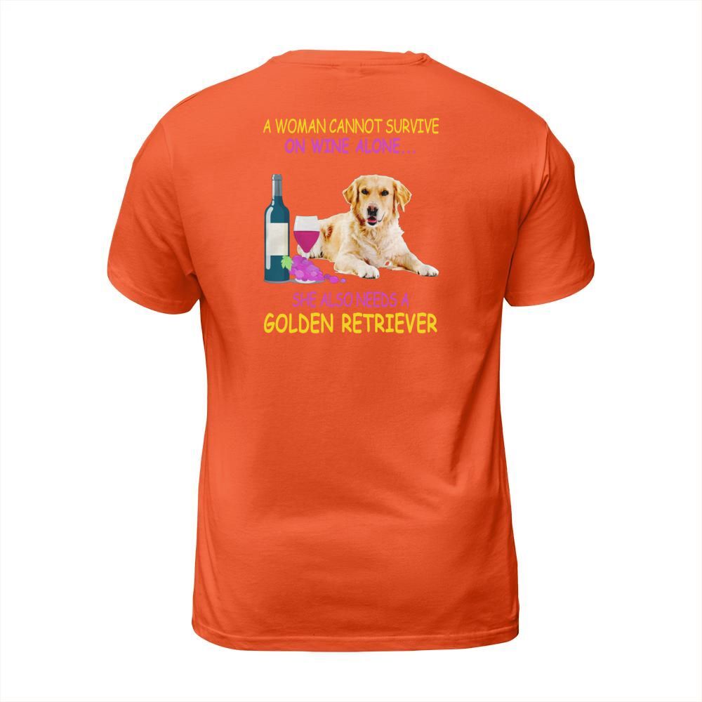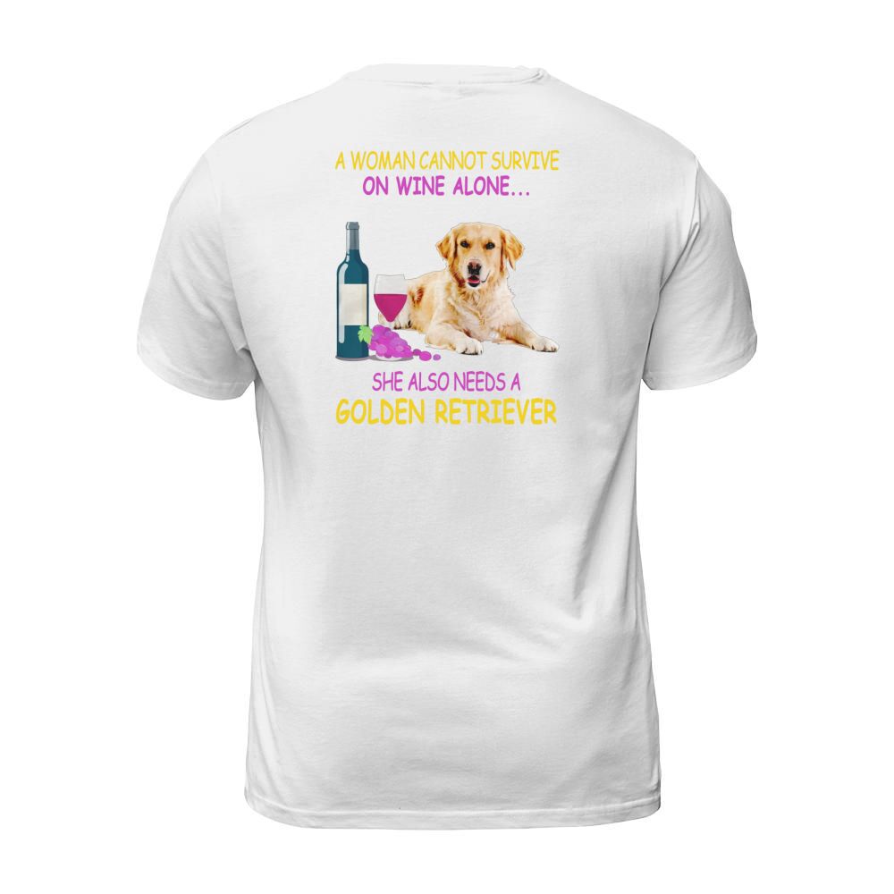 Shop A woman cannot survive on wine alone Golden Retriever T-Shirt Unisex custom made just for you. Available on many styles, sizes, and colors.