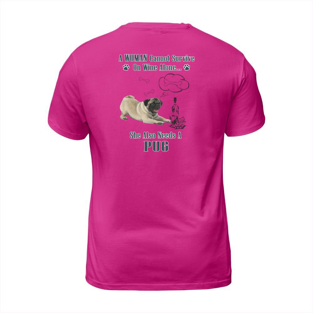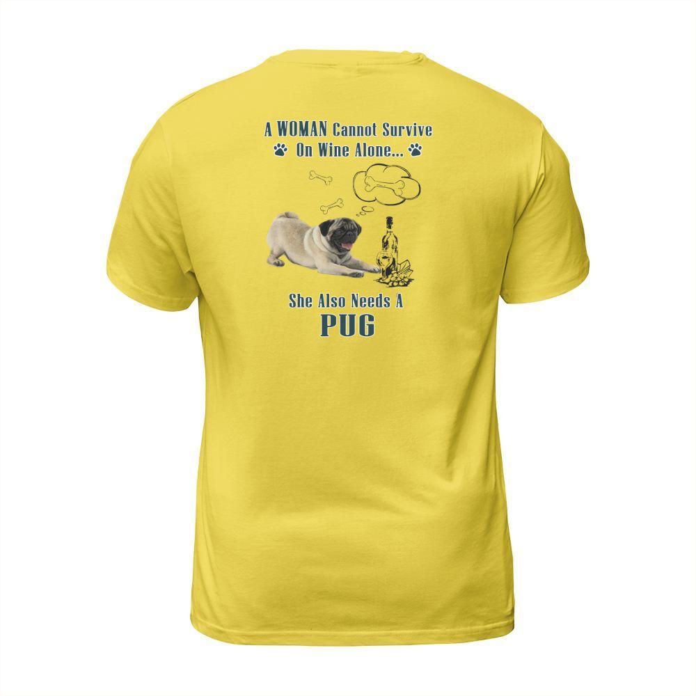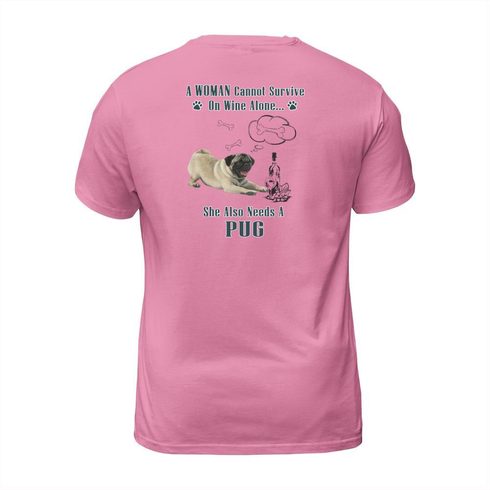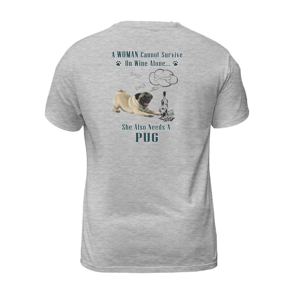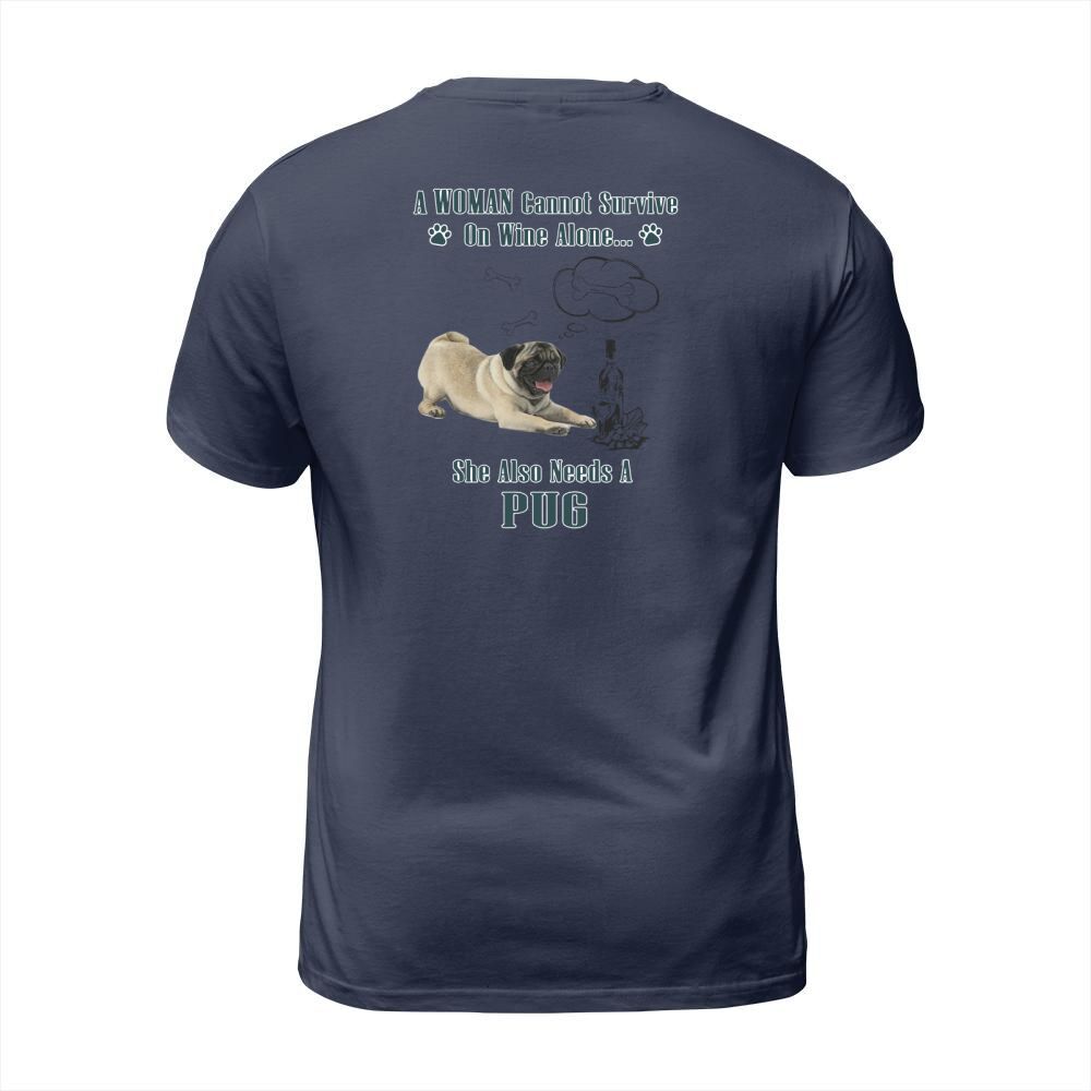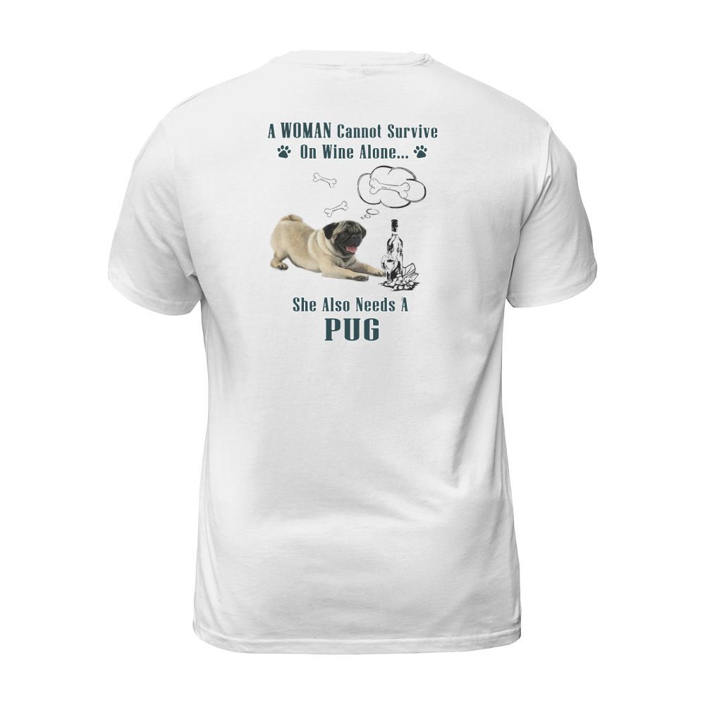 Shop A Woman Cannot Survive On Wine Alone She Also Needs A Pug T-Shirt Unisex custom made just for you. Available on many styles, sizes, and colors.