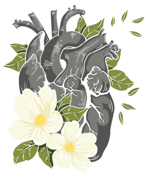 Anatomical Heart And Flowers