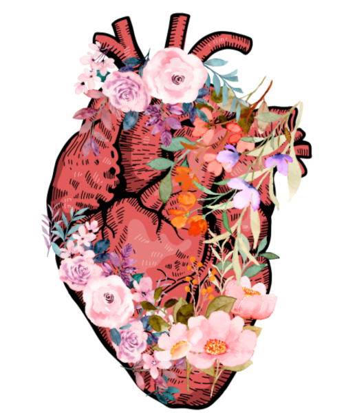 Anatomical Heart And Flowers