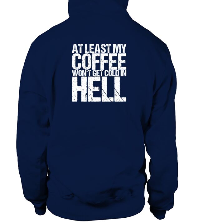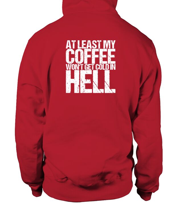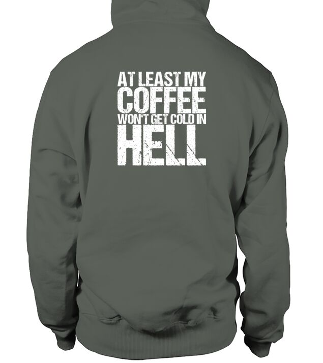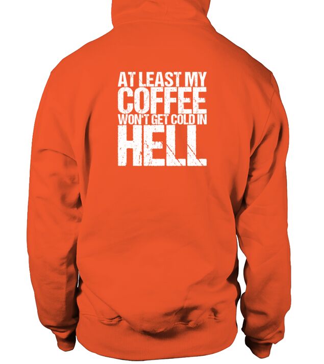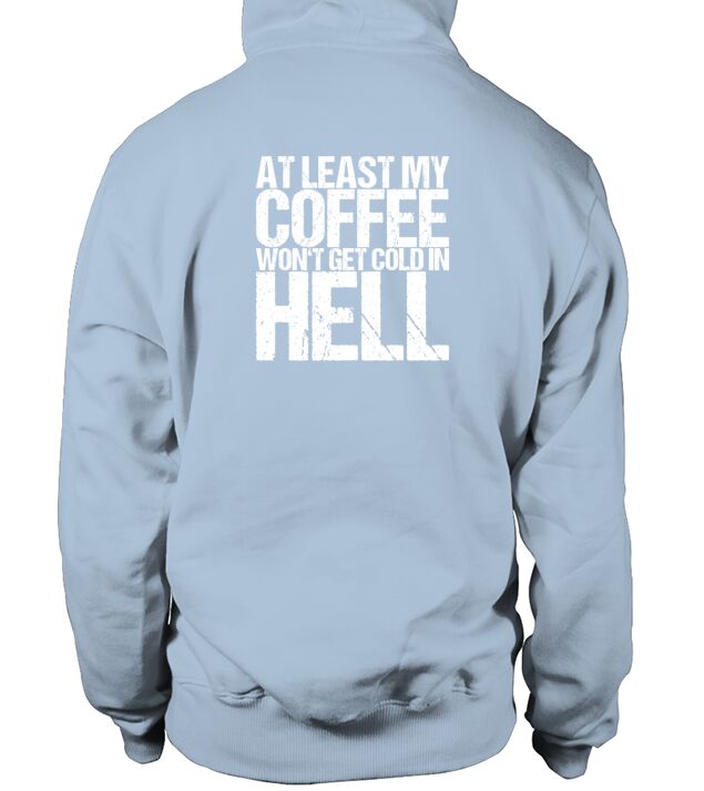 Shop At Least My Coffee Wont Get Cold In Hell Hoodie Unisex custom made just for you. Available on many styles, sizes, and colors.