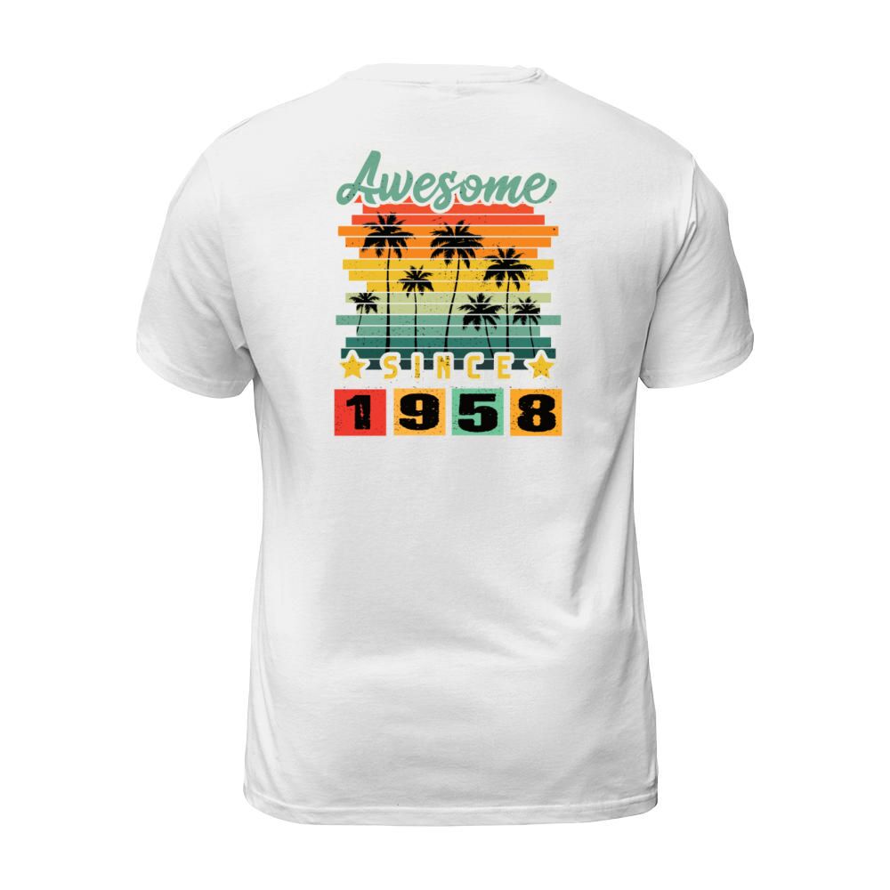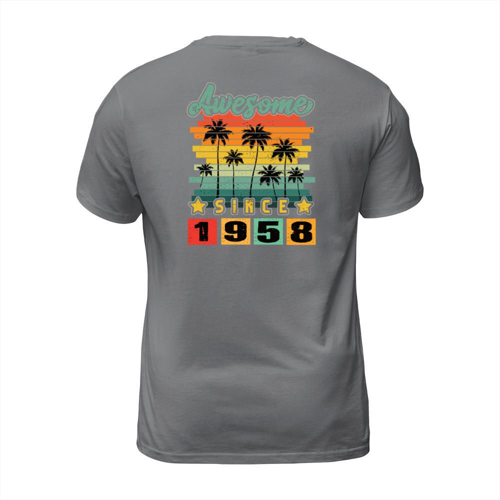 Shop Awesome Since 1958 T-Shirt Unisex custom made just for you. Available on many styles, sizes, and colors.