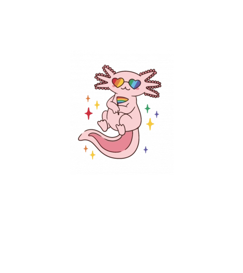 Axolotl cartoon holding a Pride flag
