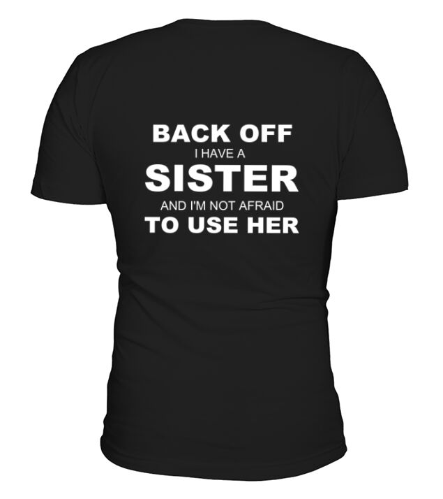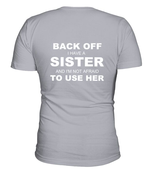 Shop Back Off I Have A Sister & I am Not Afraid To Use Her V-Neck T-shirt custom made just for you. Available on many styles, sizes, and colors.
