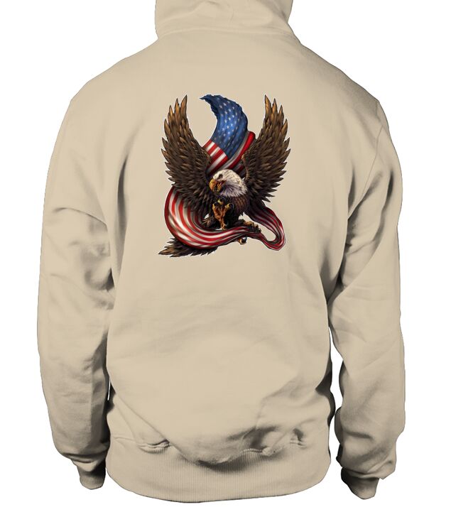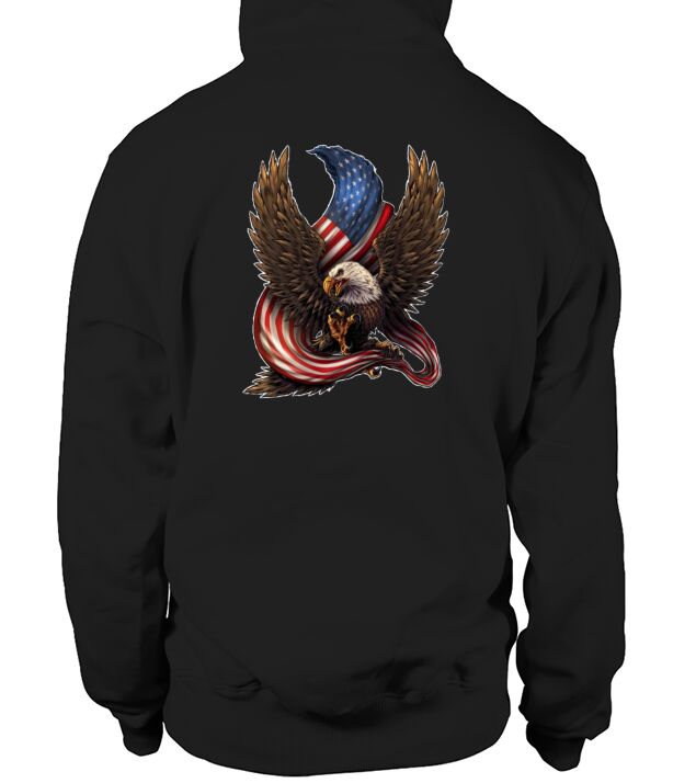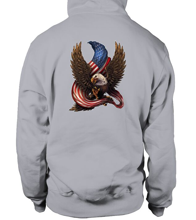 Shop Bald Eagle American Flag Men's Hoodie custom made just for you. Available on many styles, sizes, and colors.