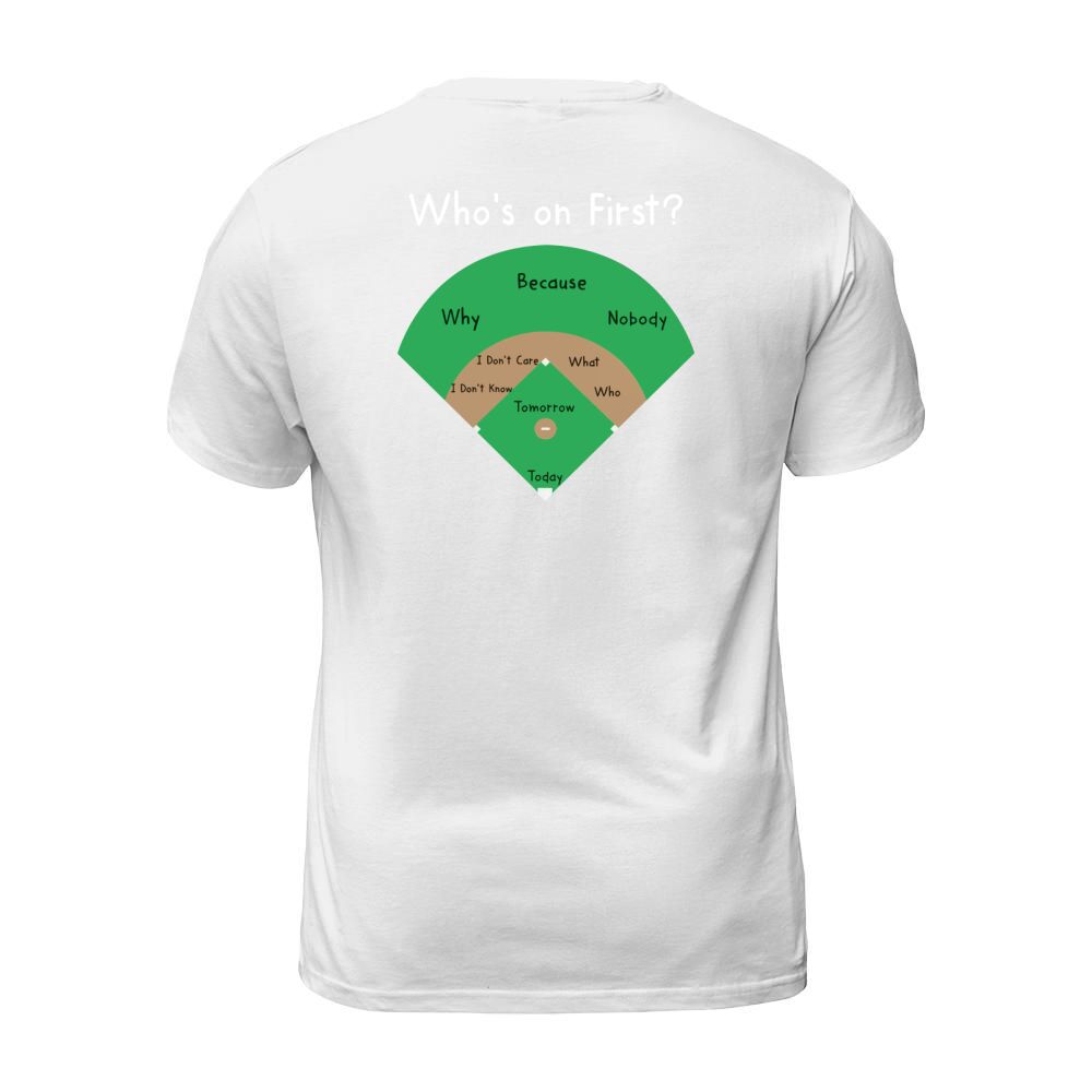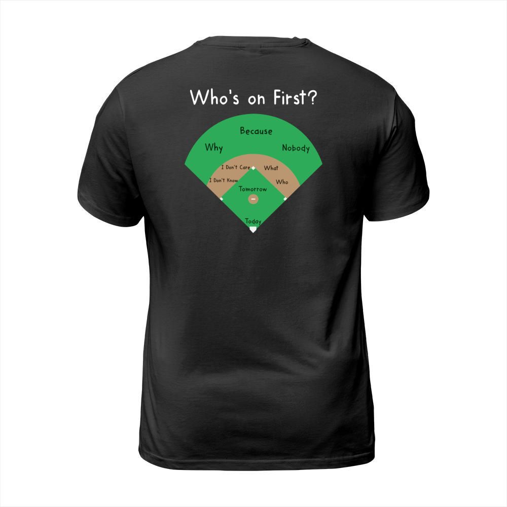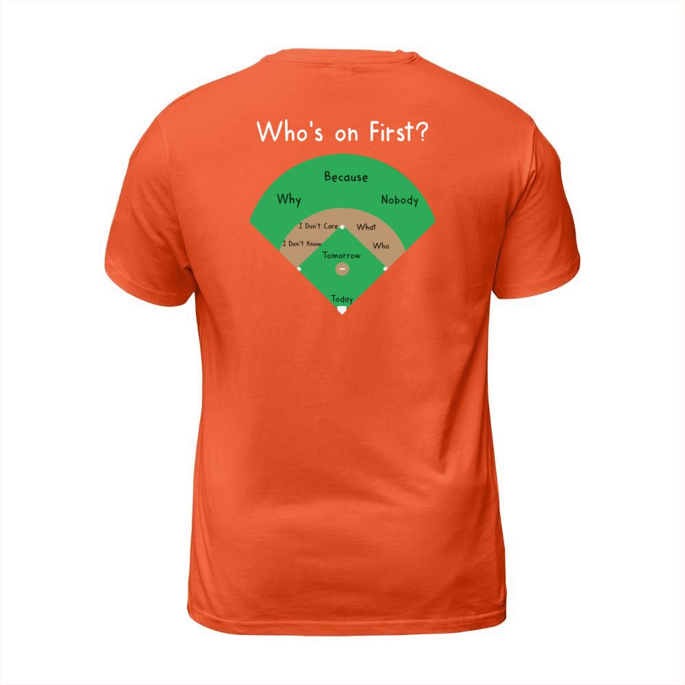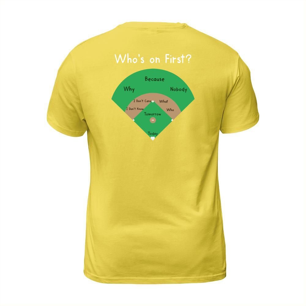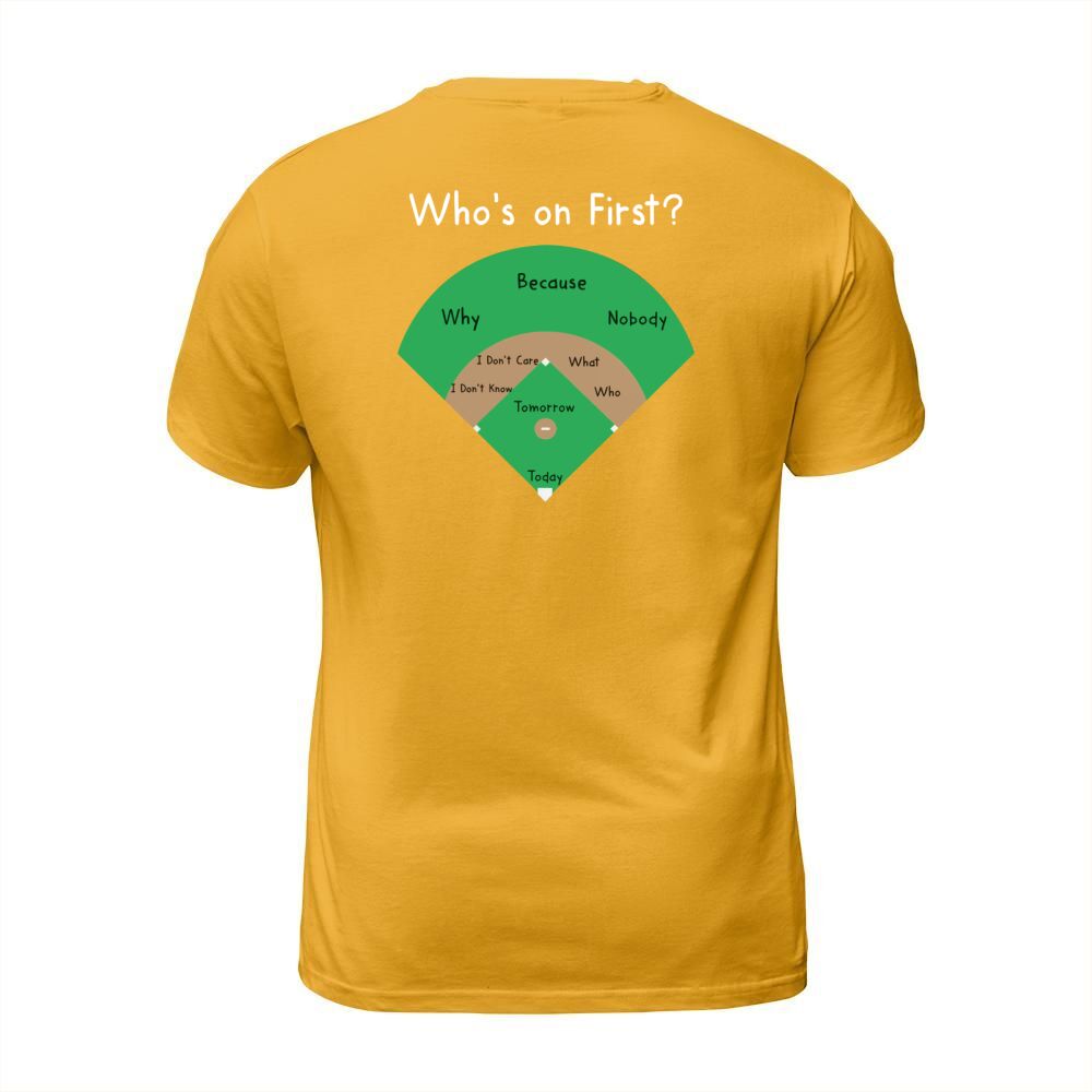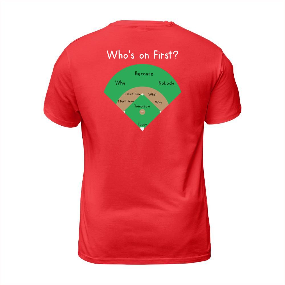 Shop BASEBALL WHOS ON FIRST T-Shirt Unisex custom made just for you. Available on many styles, sizes, and colors.