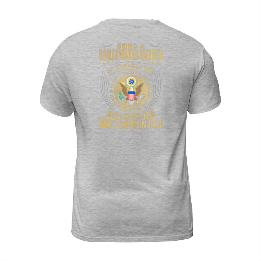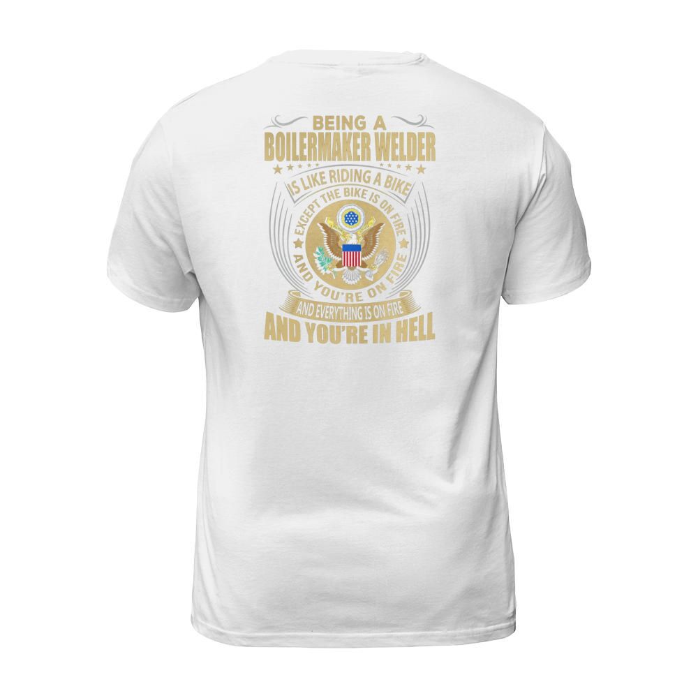 Shop Being a Boilermaker Welder like Riding a Bike Job Title Shirts T-Shirt Unisex custom made just for you. Available on many styles, sizes, and colors.