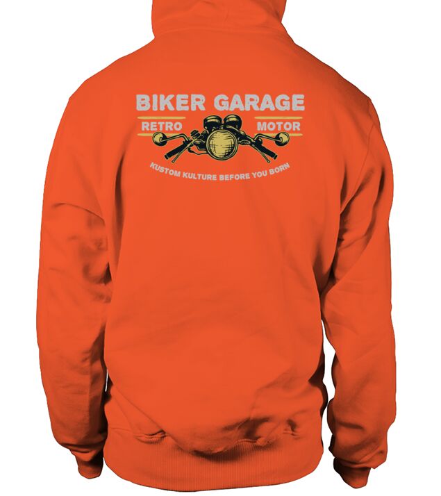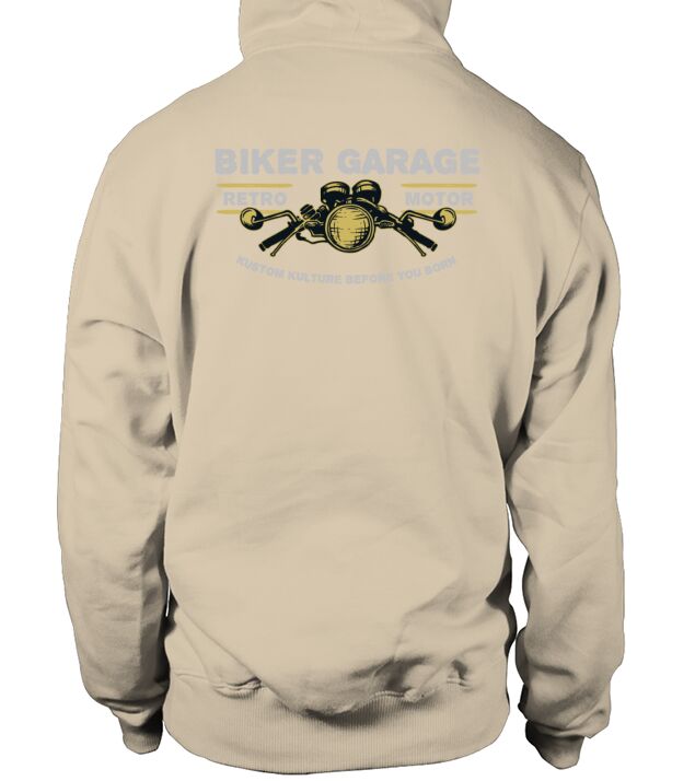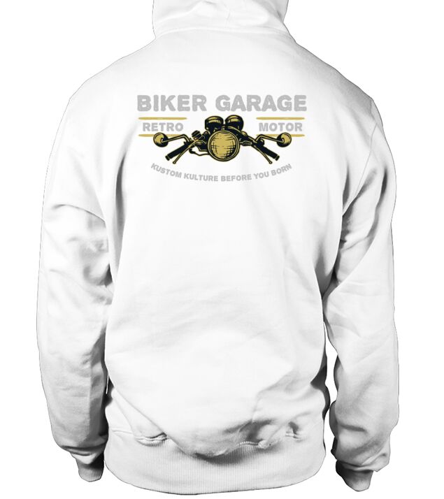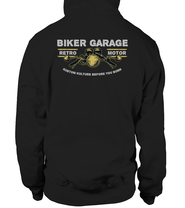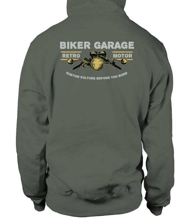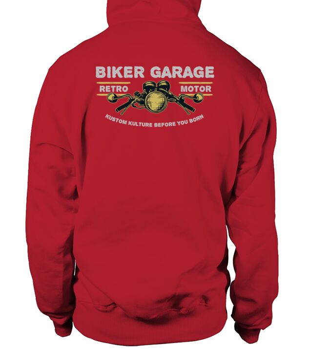 Shop Biker Garage Hoodie Unisex custom made just for you. Available on many styles, sizes, and colors.