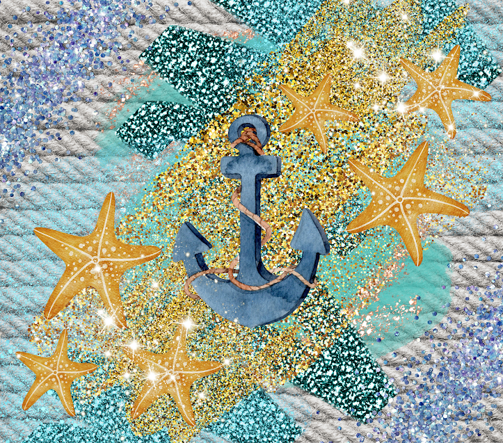 Blue Glitter Nautical Beach Tumbler