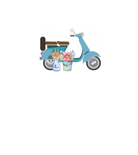 Blue Retro Scooter With Tulips Art Design