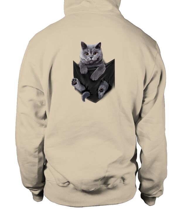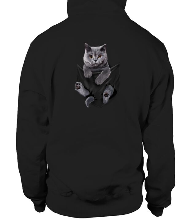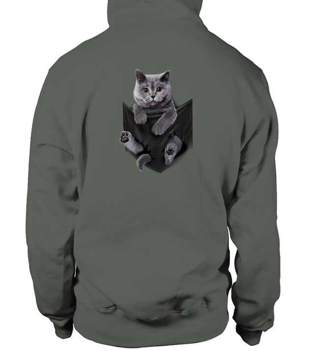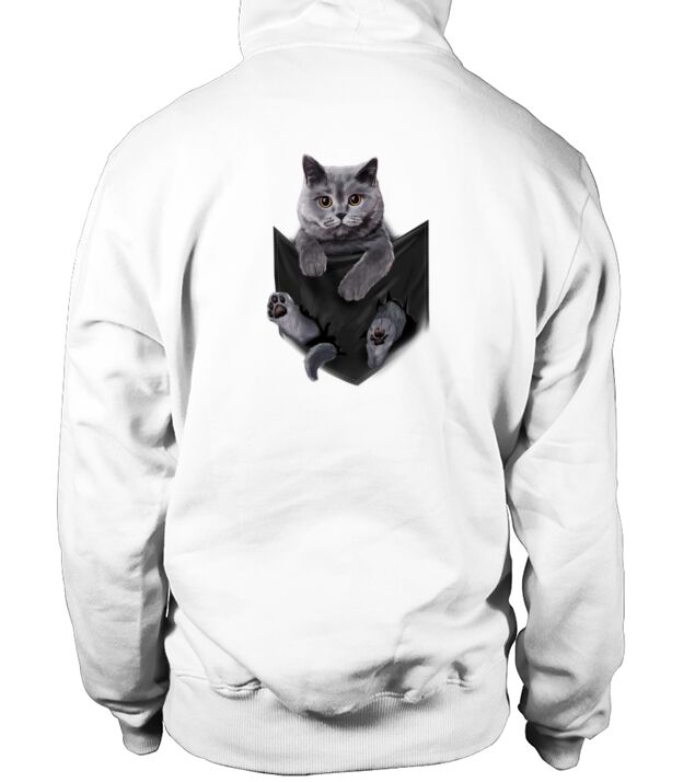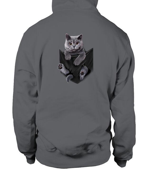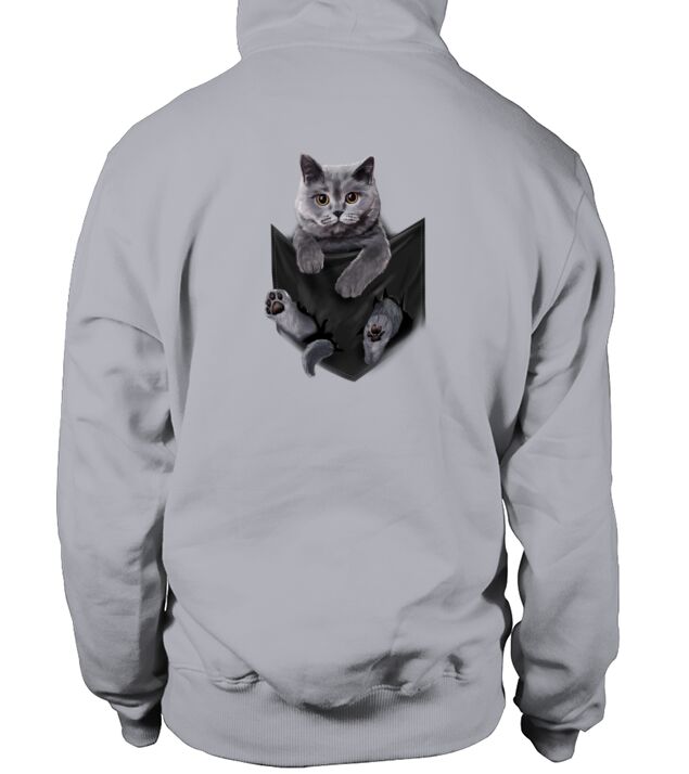 Shop British Grey Cat in Pocket Hoodie Unisex custom made just for you. Available on many styles, sizes, and colors.