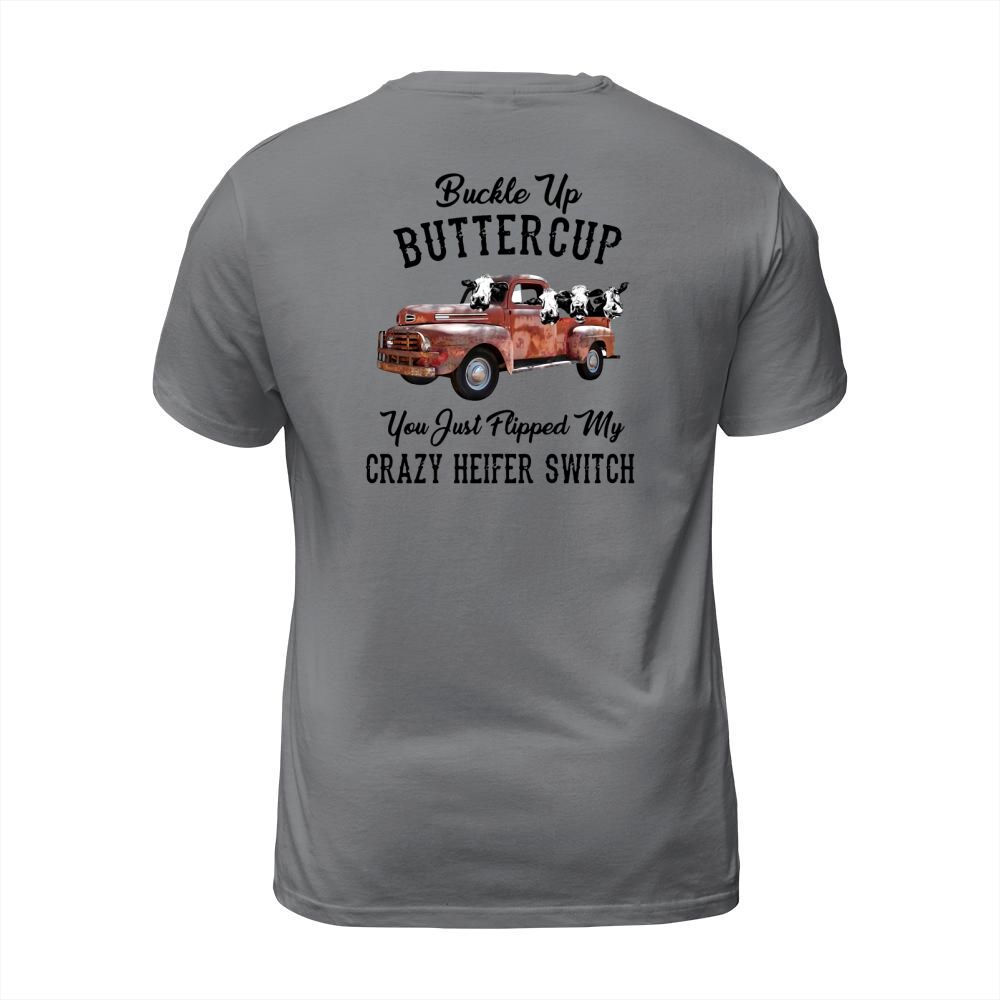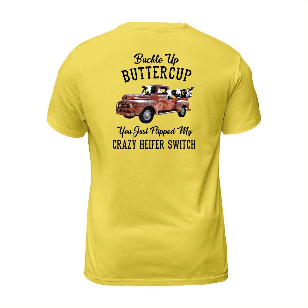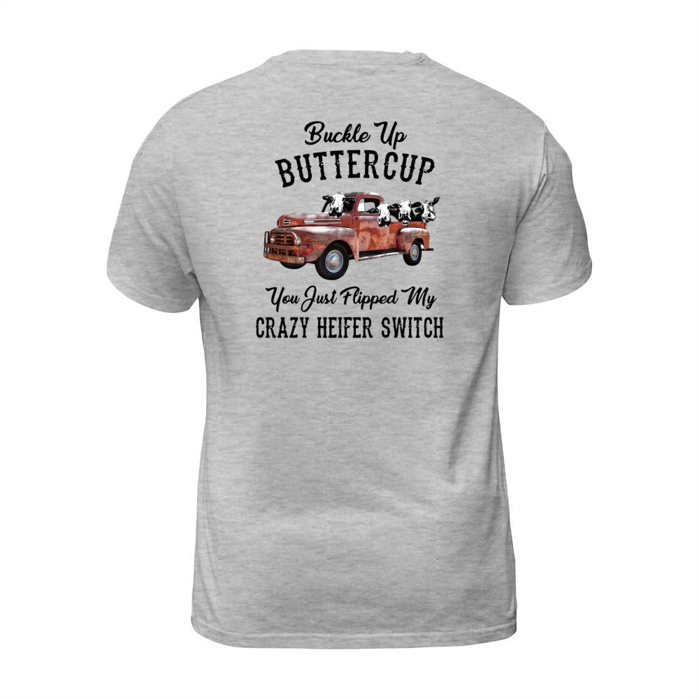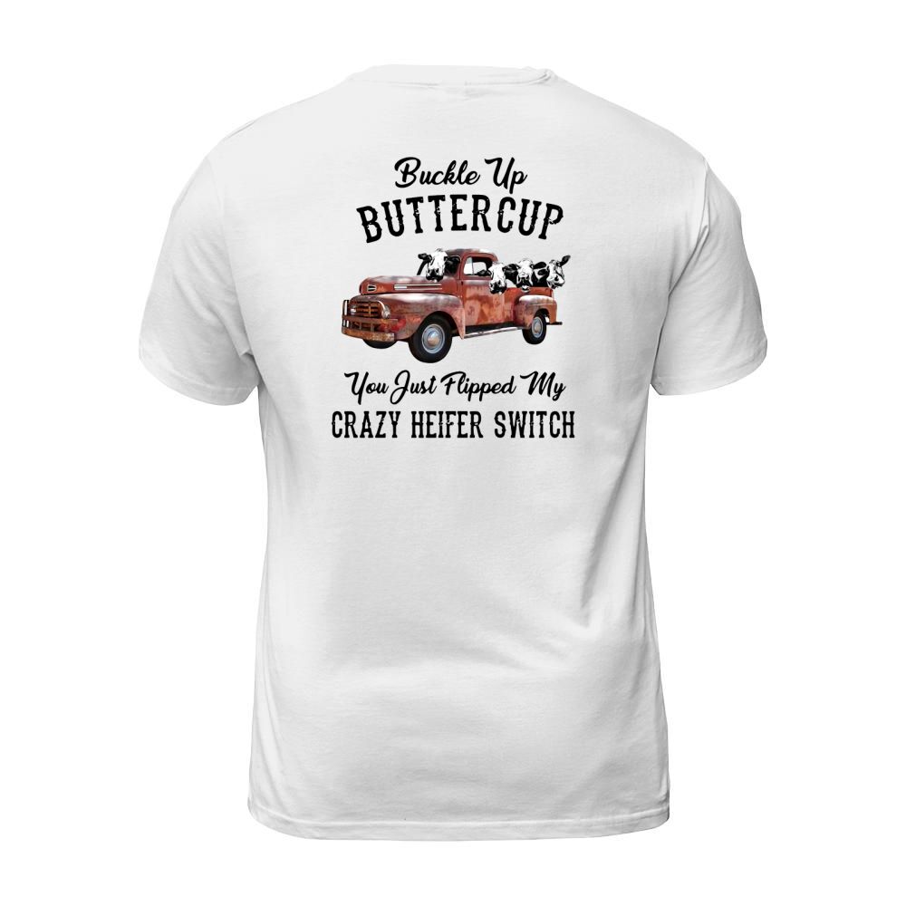 Shop Buckle Up Buttercup You Just Flipped My Crazy Heifer Switch shirt T-Shirt Unisex custom made just for you. Available on many styles, sizes, and colors.