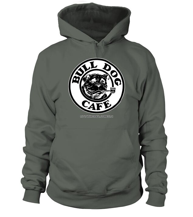 Shop Bulldog cafe Hoodie Unisex custom made just for you. Available on many styles, sizes, and colors.