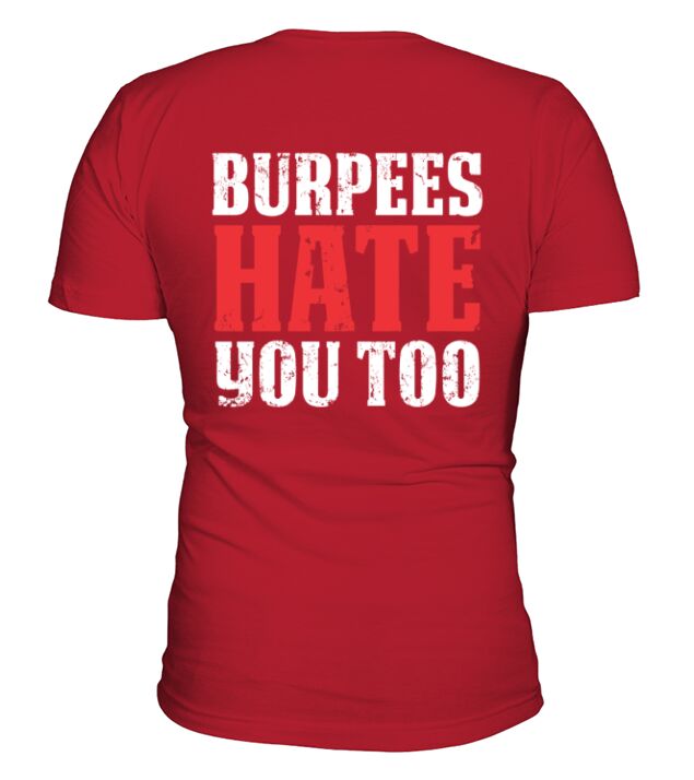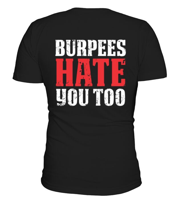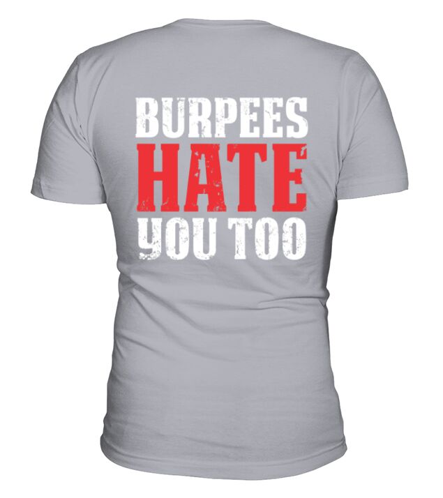 Shop Burpees Hate You Too V-Neck T-shirt custom made just for you. Available on many styles, sizes, and colors.