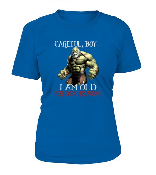 Shop Careful Boy I Am Old For Good Reason T-Shirt Woman custom made just for you. Available on many styles, sizes, and colors.