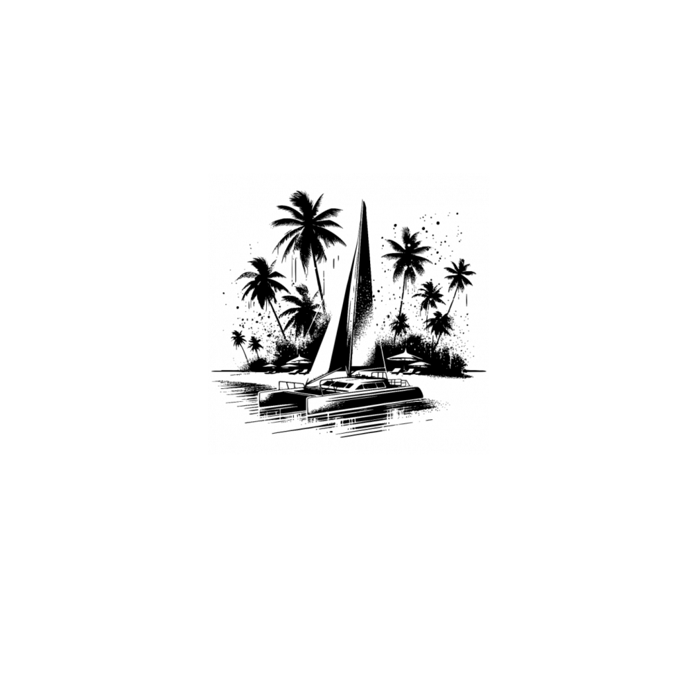 Catamaran Double Hull Sailing Boat With Palm Trees