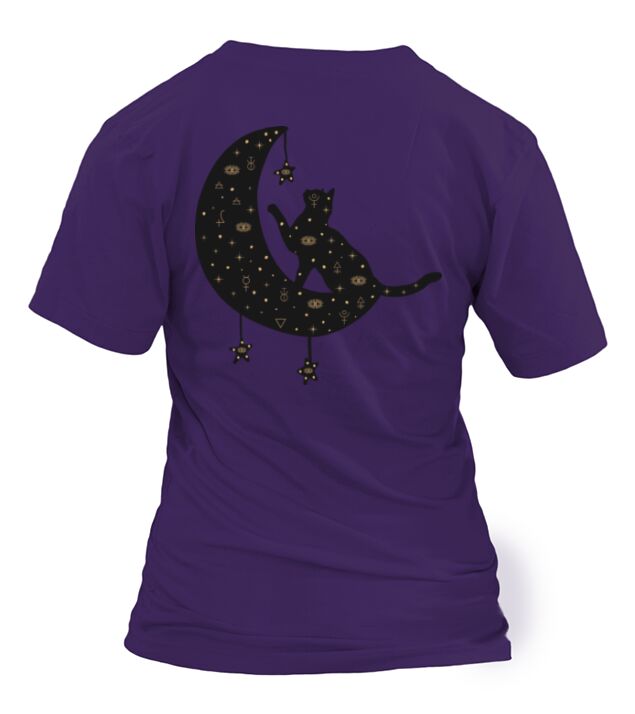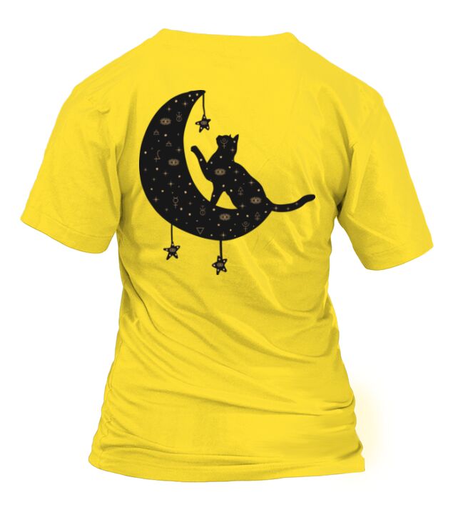 Shop Celestial Cat on Moon T-Shirt Woman custom made just for you. Available on many styles, sizes, and colors.