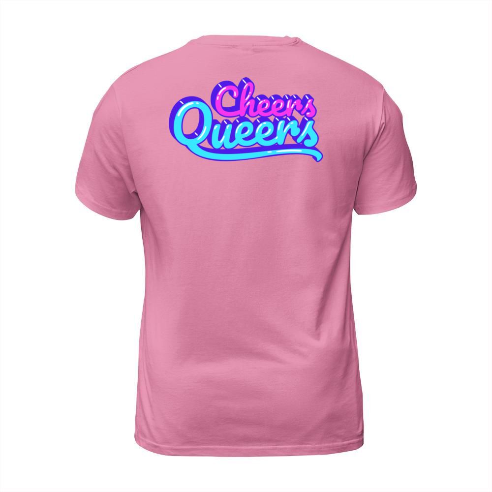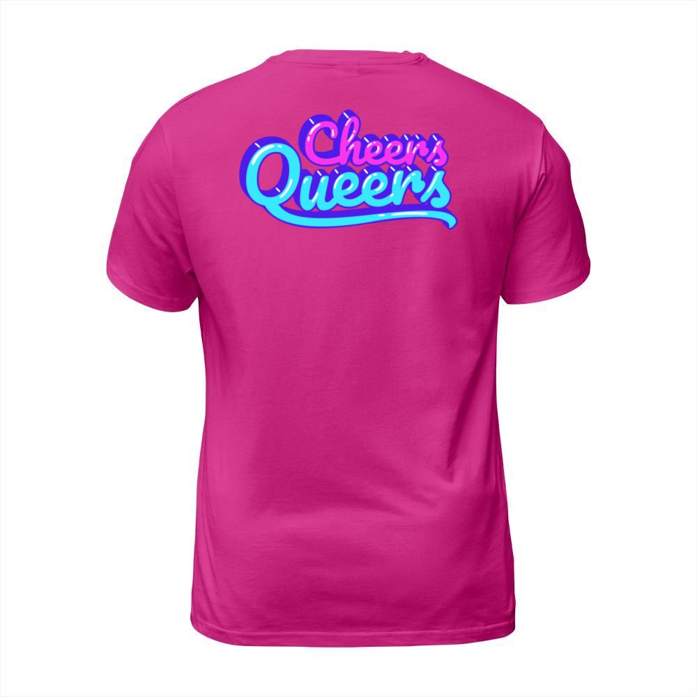 Shop Cheers Queers Pride Quote T-Shirt Unisex custom made just for you. Available on many styles, sizes, and colors.