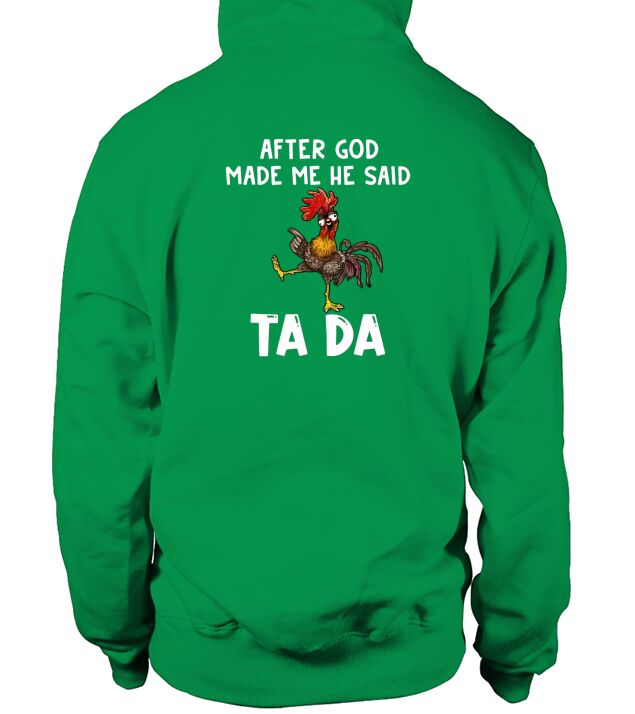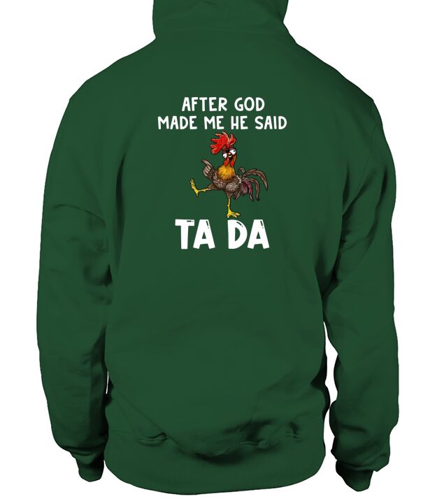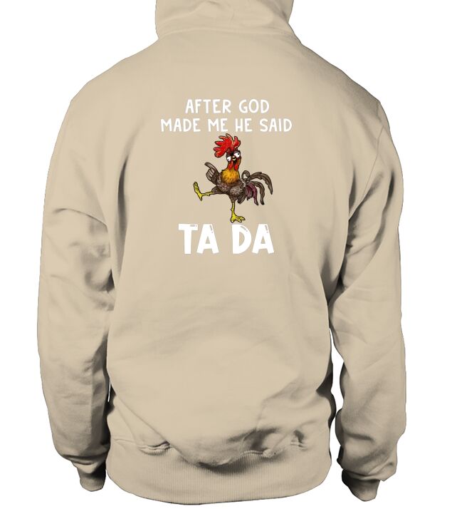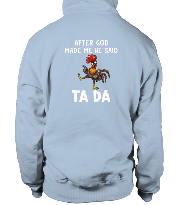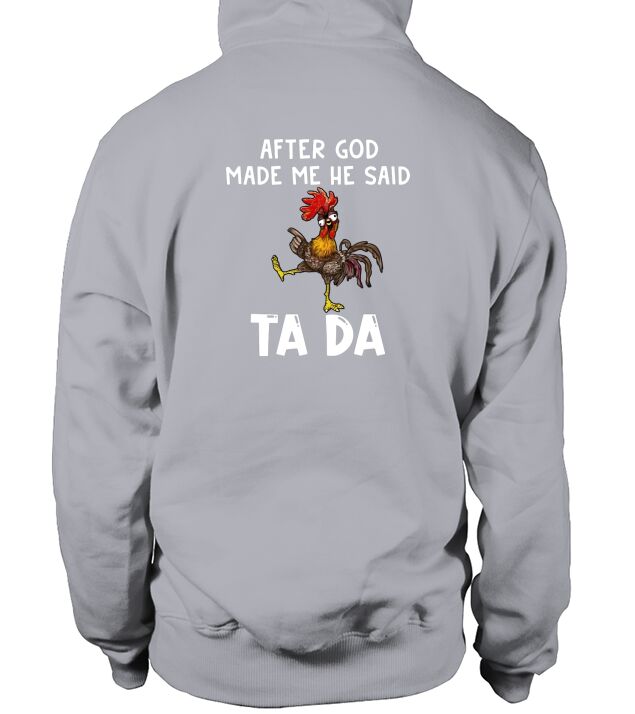Shop Chicken Hei Hei after god made Me he said ta da Hoodie Unisex custom made just for you. Available on many styles, sizes, and colors.