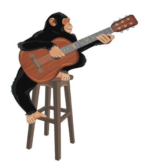 Chimpanzee playing acoustic guitar. Funny monkey shirt.