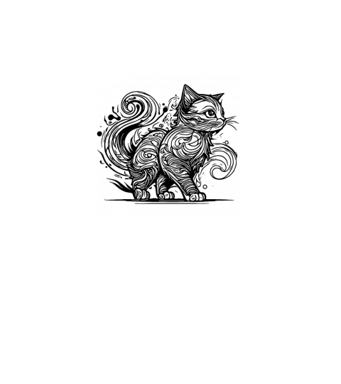 Clumsy Elegant House Cat In Tattoo Style