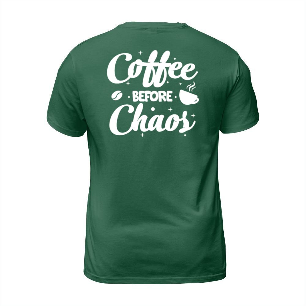Shop Coffee Before Chaos T-Shirt Unisex custom made just for you. Available on many styles, sizes, and colors.