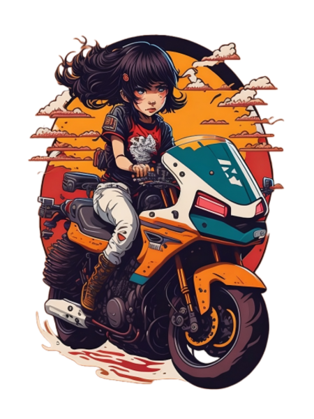 Cool cute girl motorcycle alone on the road