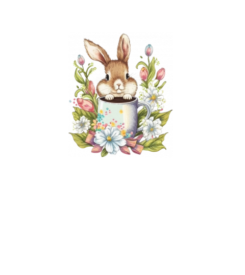 Cute easter bunny with flowers and a mug
