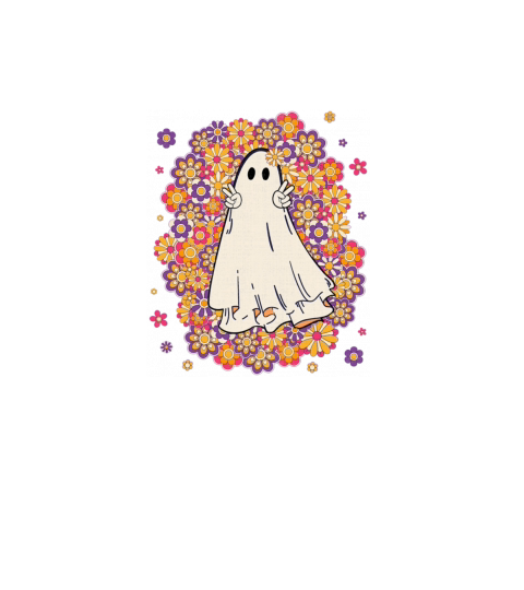 Cute Floral Ghost Retro Groovy Hippie Halloween