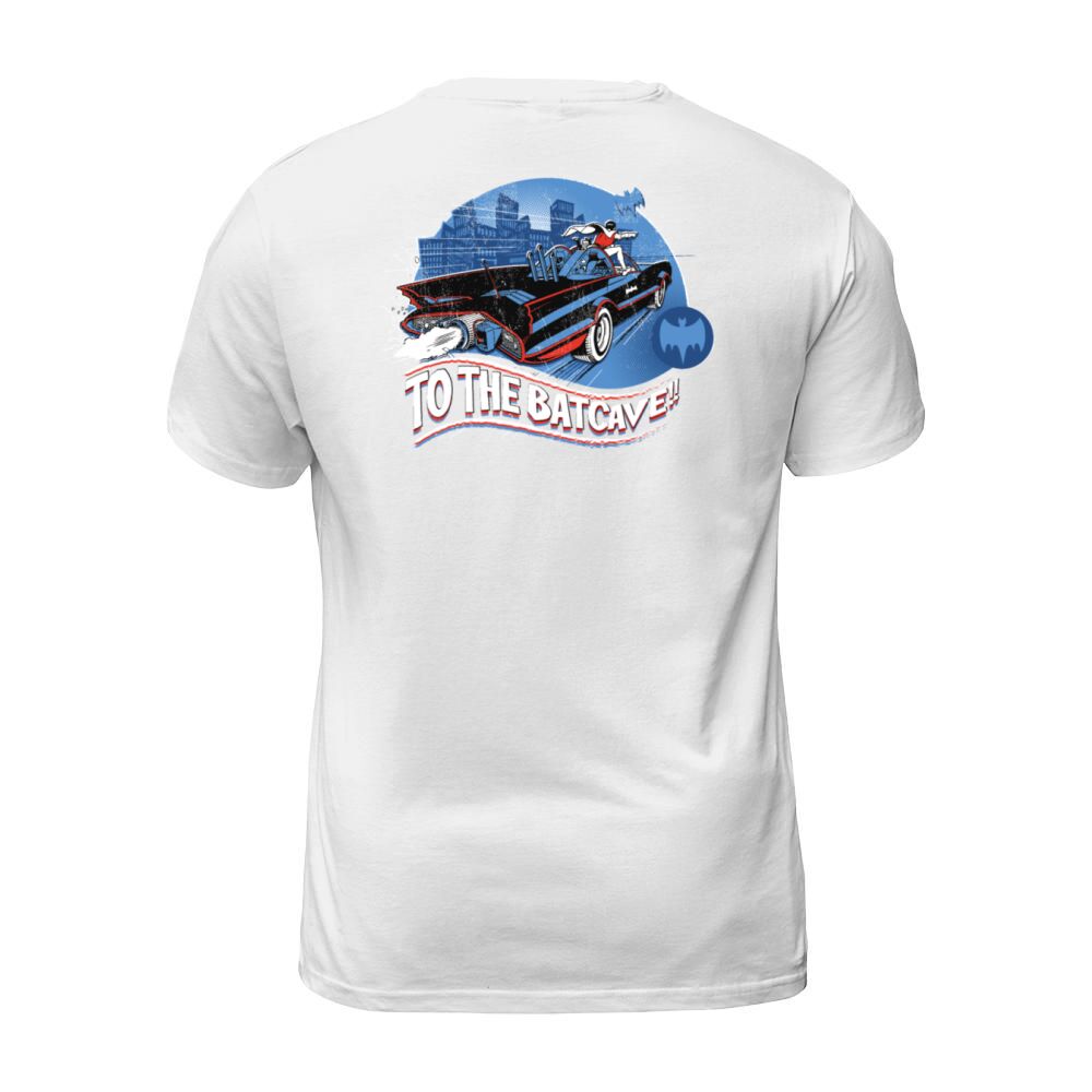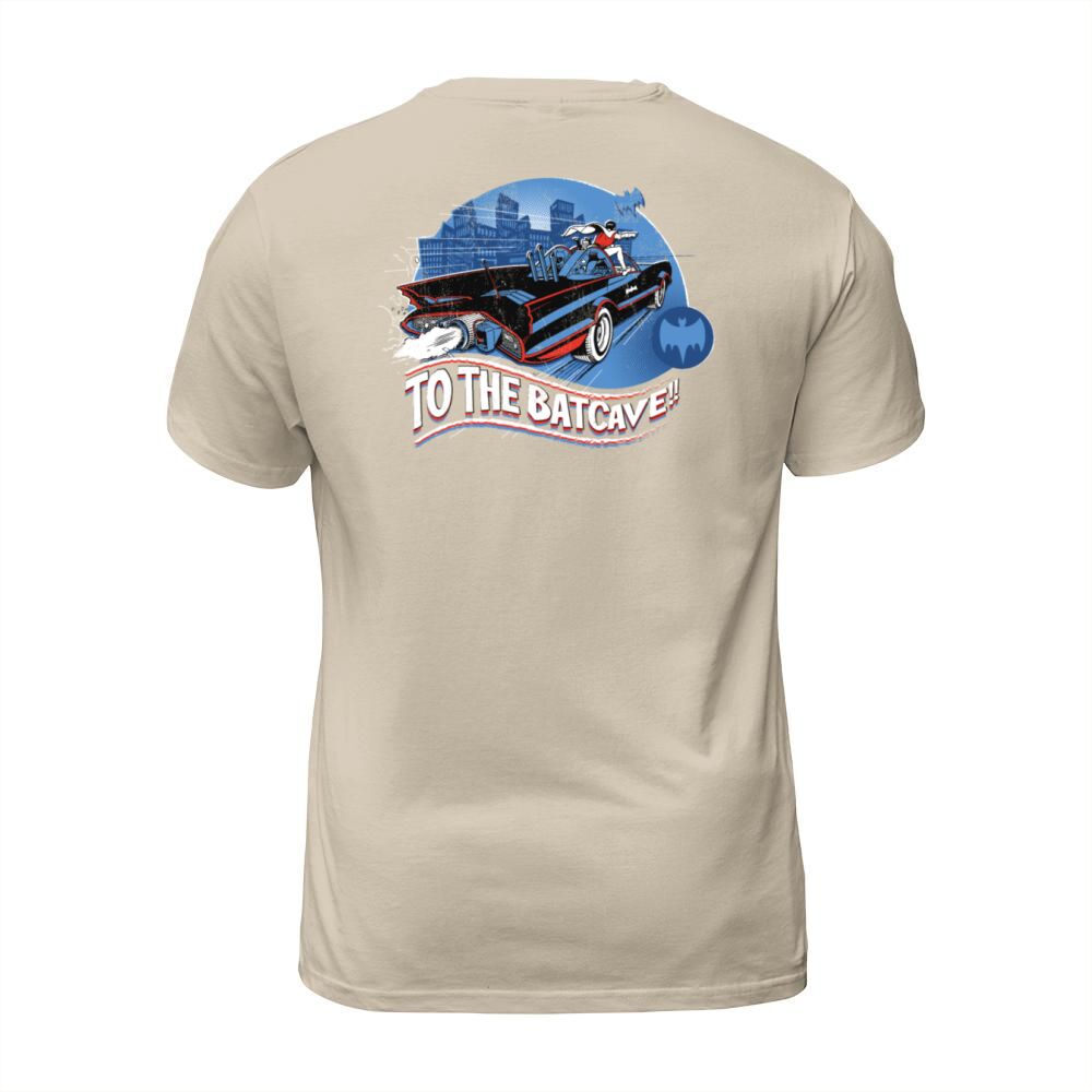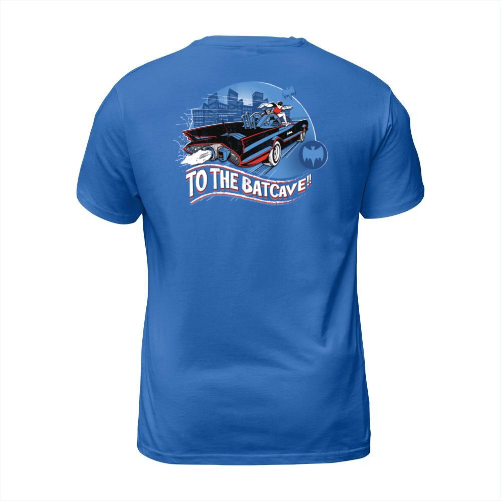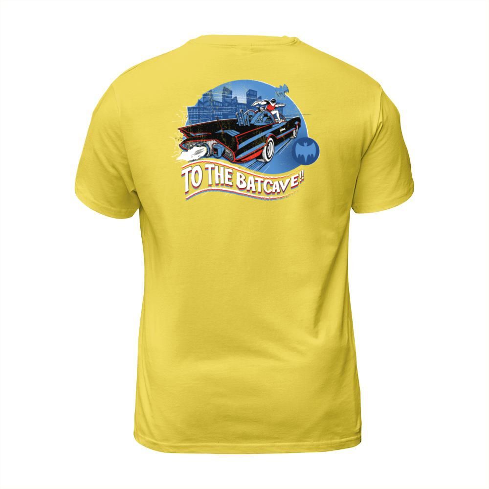 Shop DC Comics Batman Robin Drive Batmobile Retro Men's T-Shirt custom made just for you. Available on many styles, sizes, and colors.