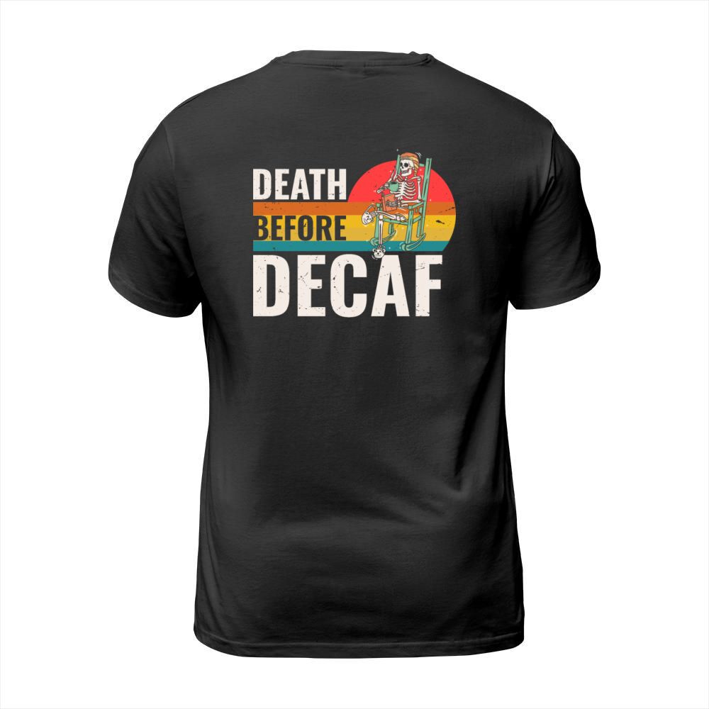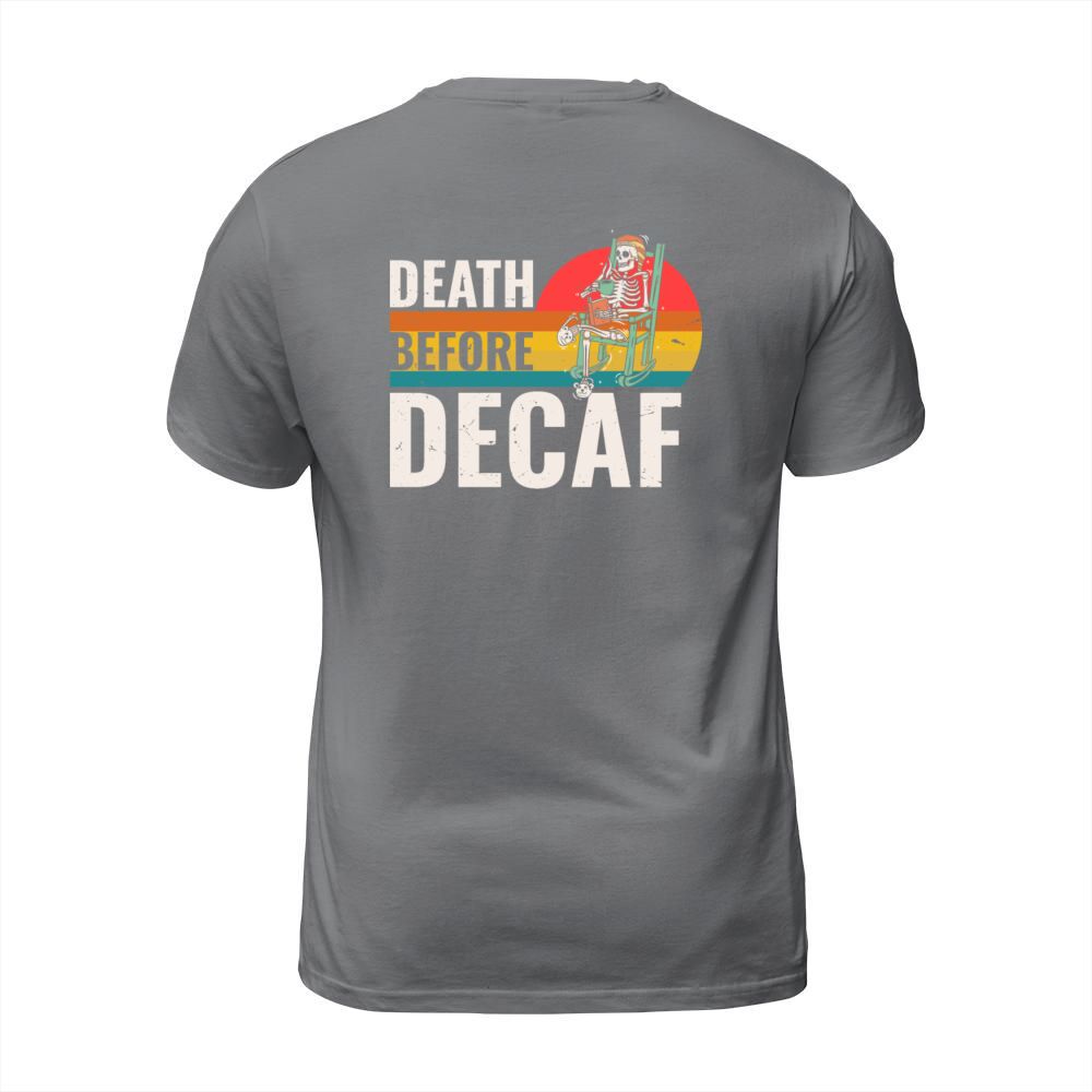 Shop Death before decaf T-Shirt Unisex custom made just for you. Available on many styles, sizes, and colors.