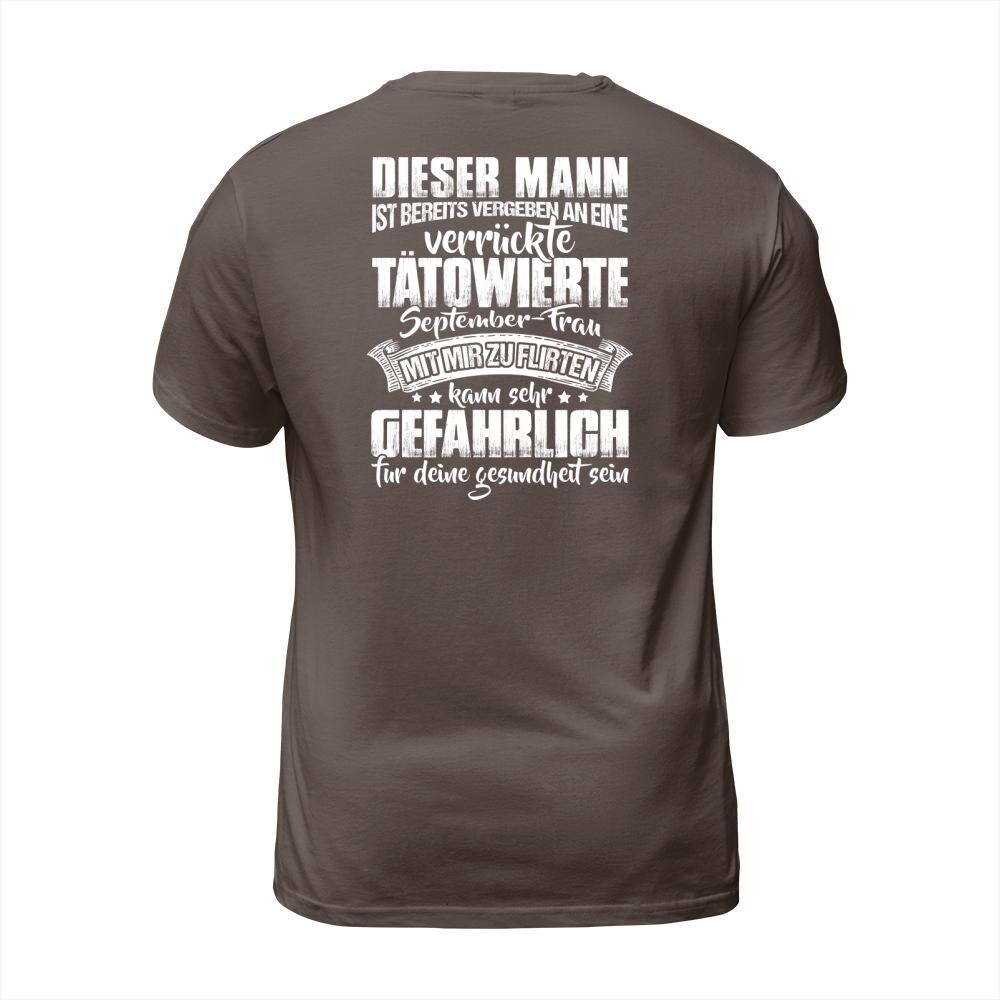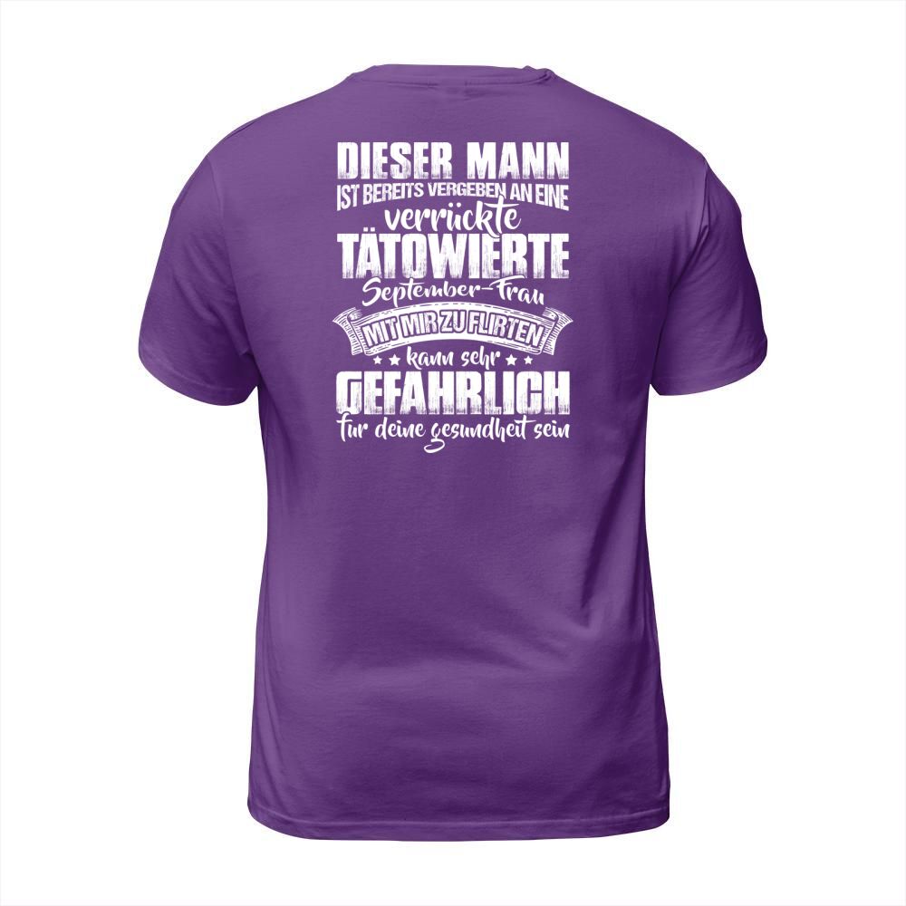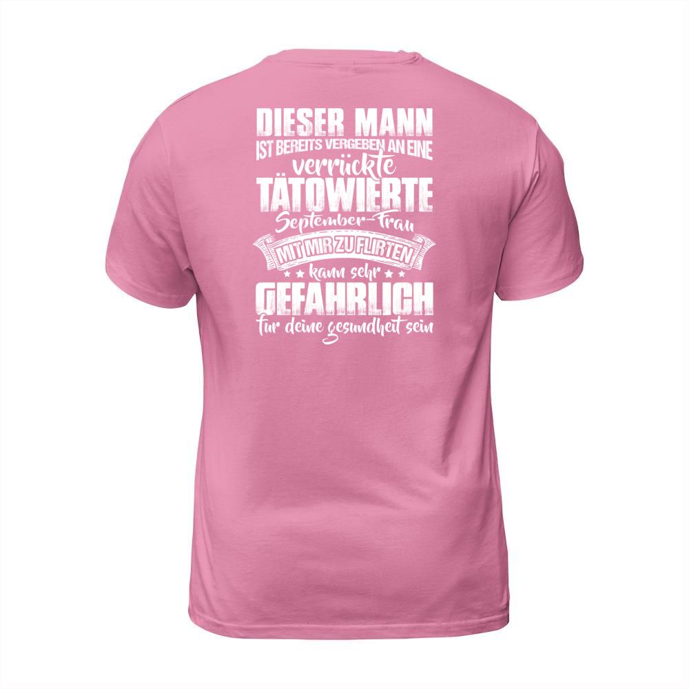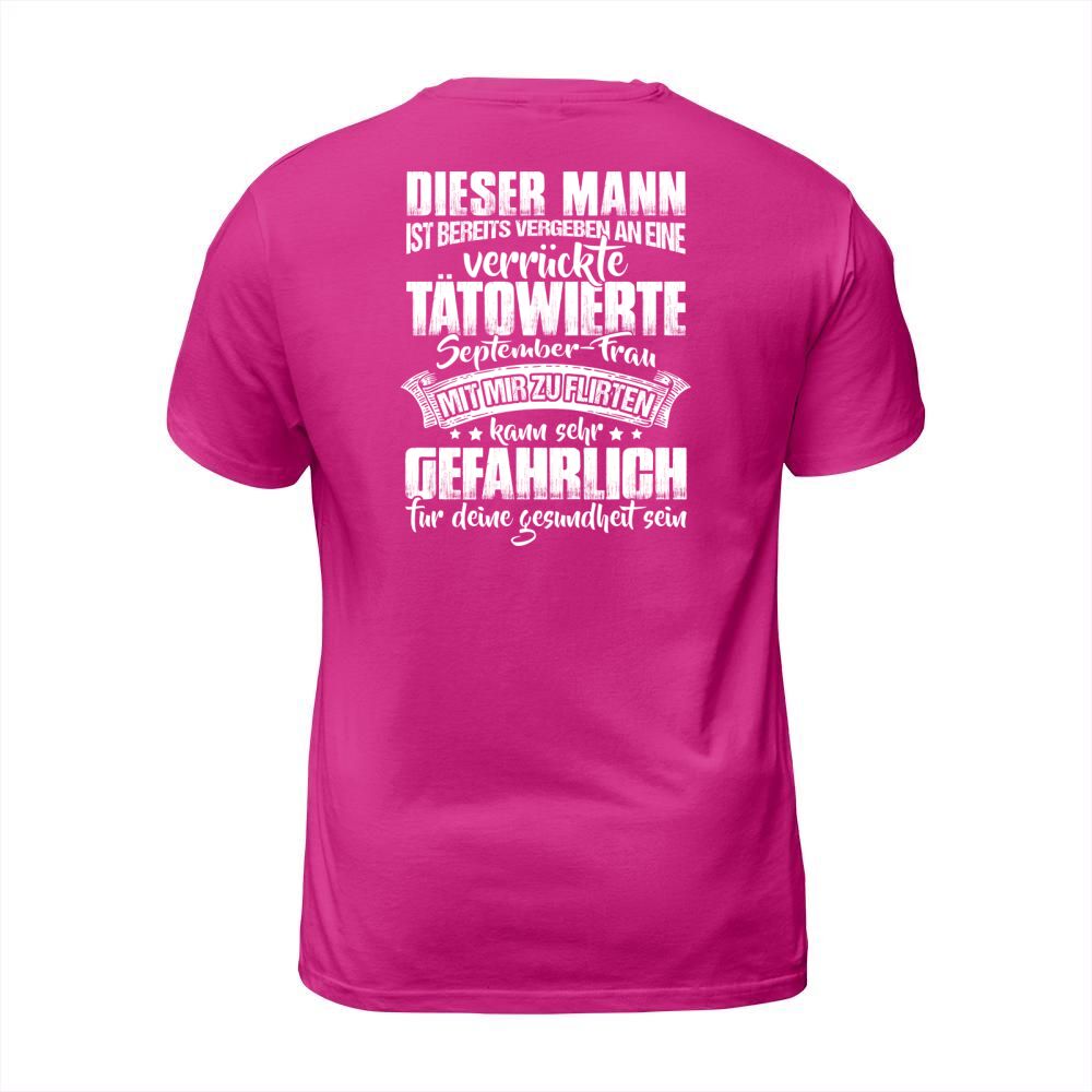 Shop DISER MANN IST BEREITS VERGEBEN AN EINE VERRUCKTE TATOWIERTE SEPTEMBER-FRAU T-Shirt Unisex custom made just for you. Available on many styles, sizes, and colors.