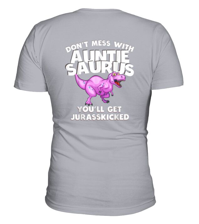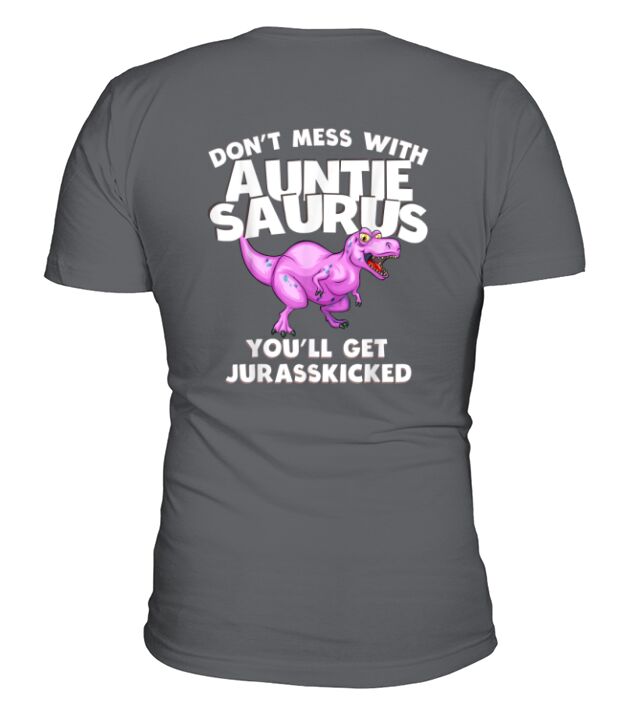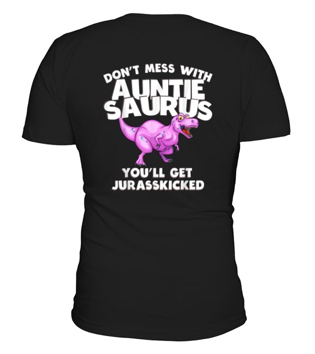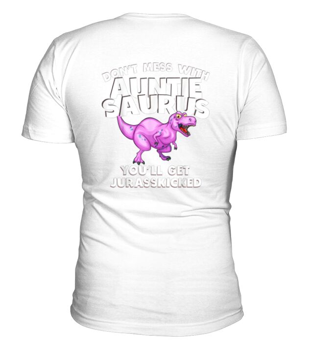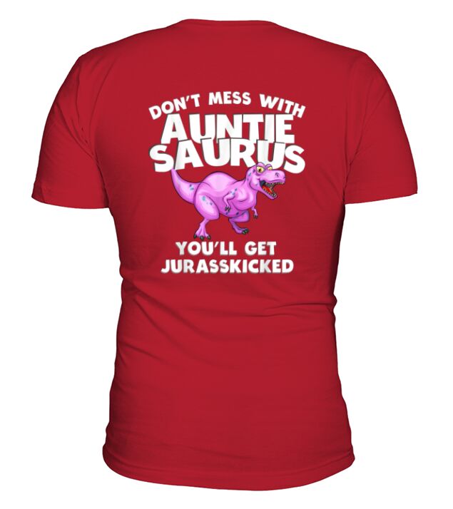 Shop Dont Mess with Auntie Saurus Youll Get Jurasskicked V-Neck T-shirt custom made just for you. Available on many styles, sizes, and colors.