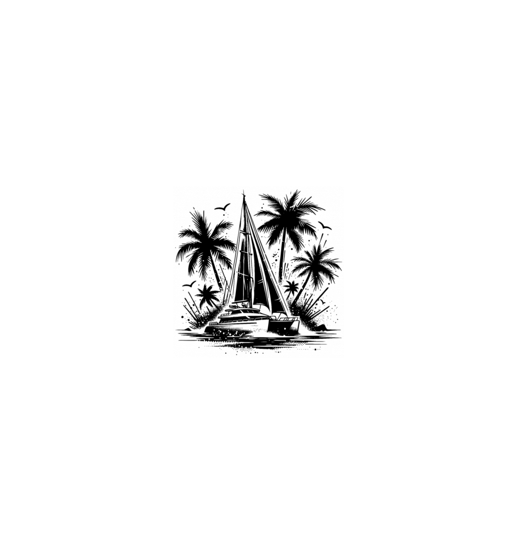 Double Hull Catamaran Sailing Boat With Palm Trees