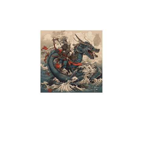 Dragon and samurai preparing for battle