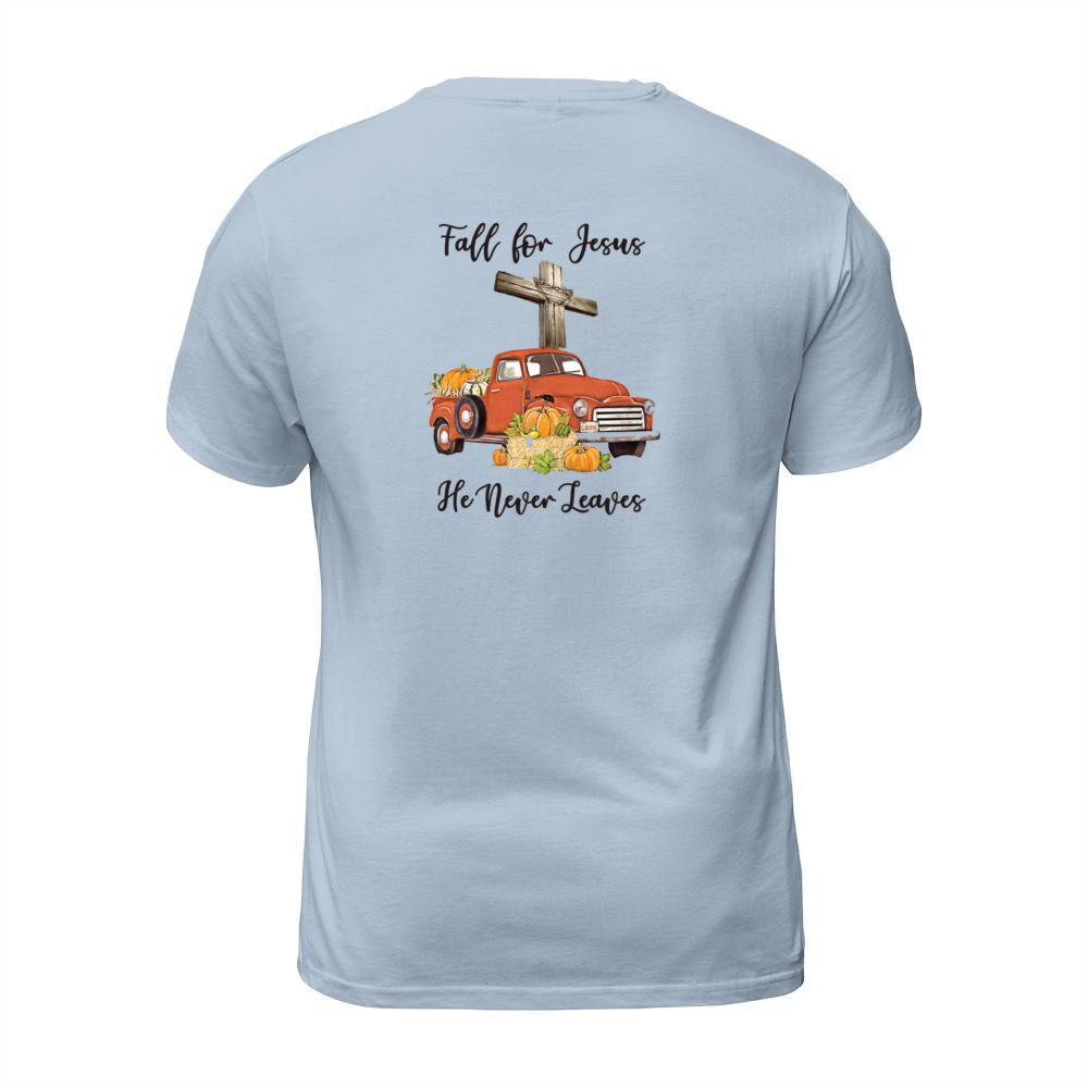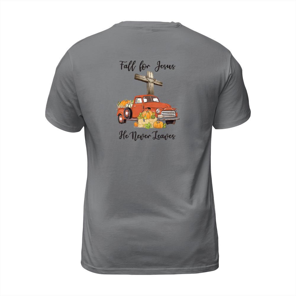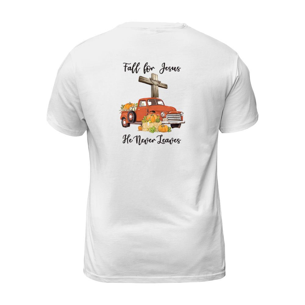 Shop Fall for Jesus He Never Leaves Men's T-Shirt custom made just for you. Available on many styles, sizes, and colors.