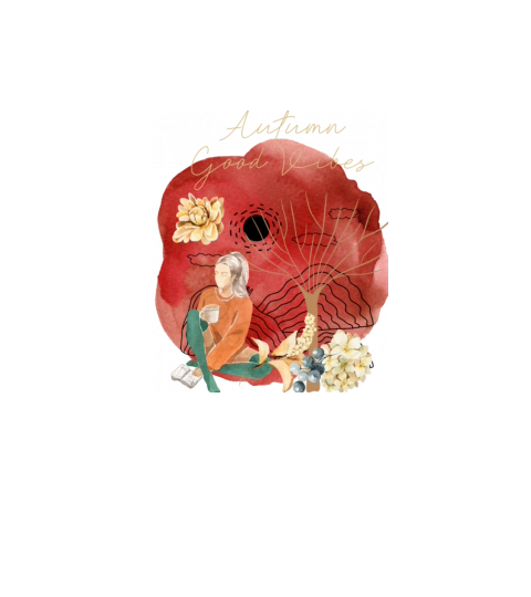 Fall Good Vibes Girl drink Cofee Red