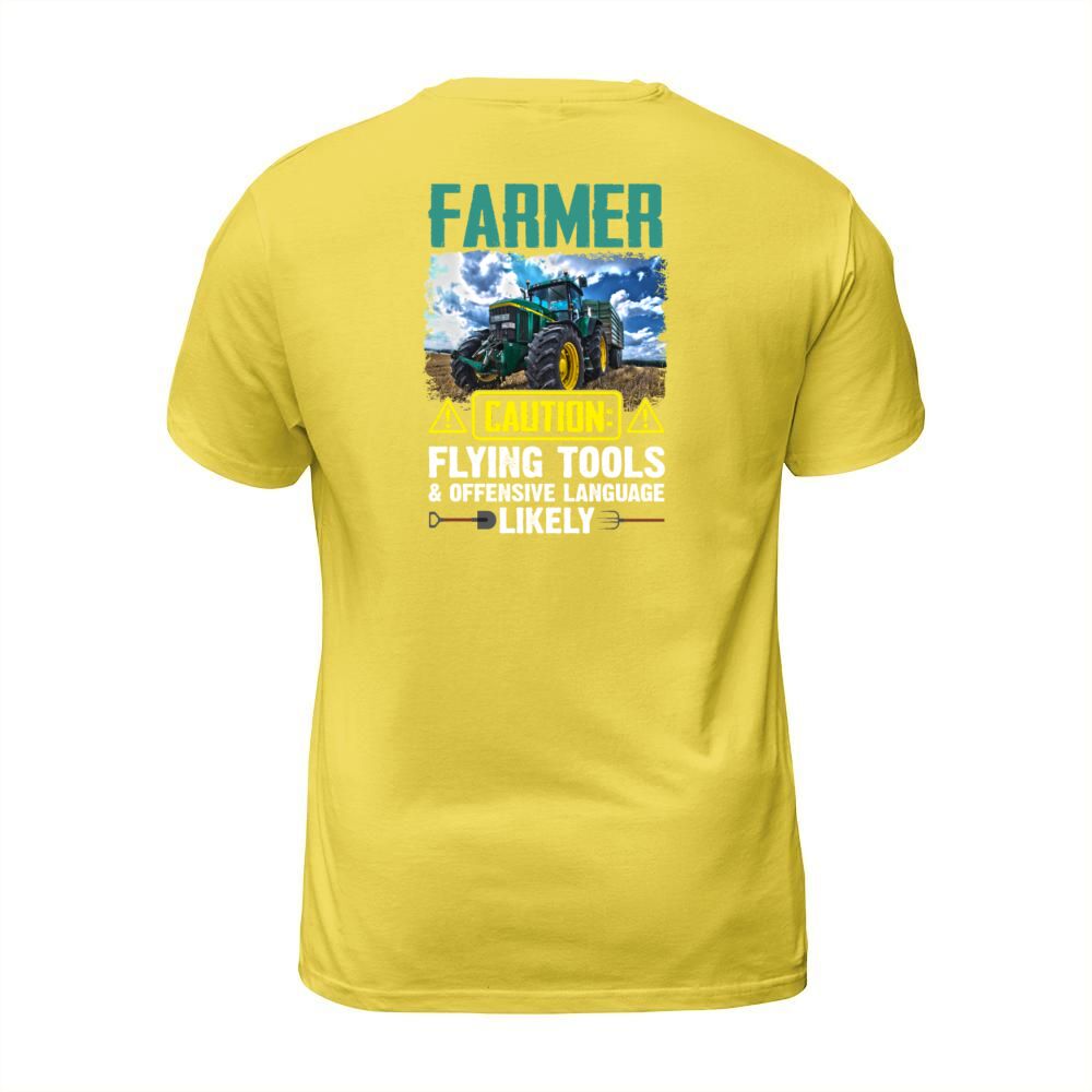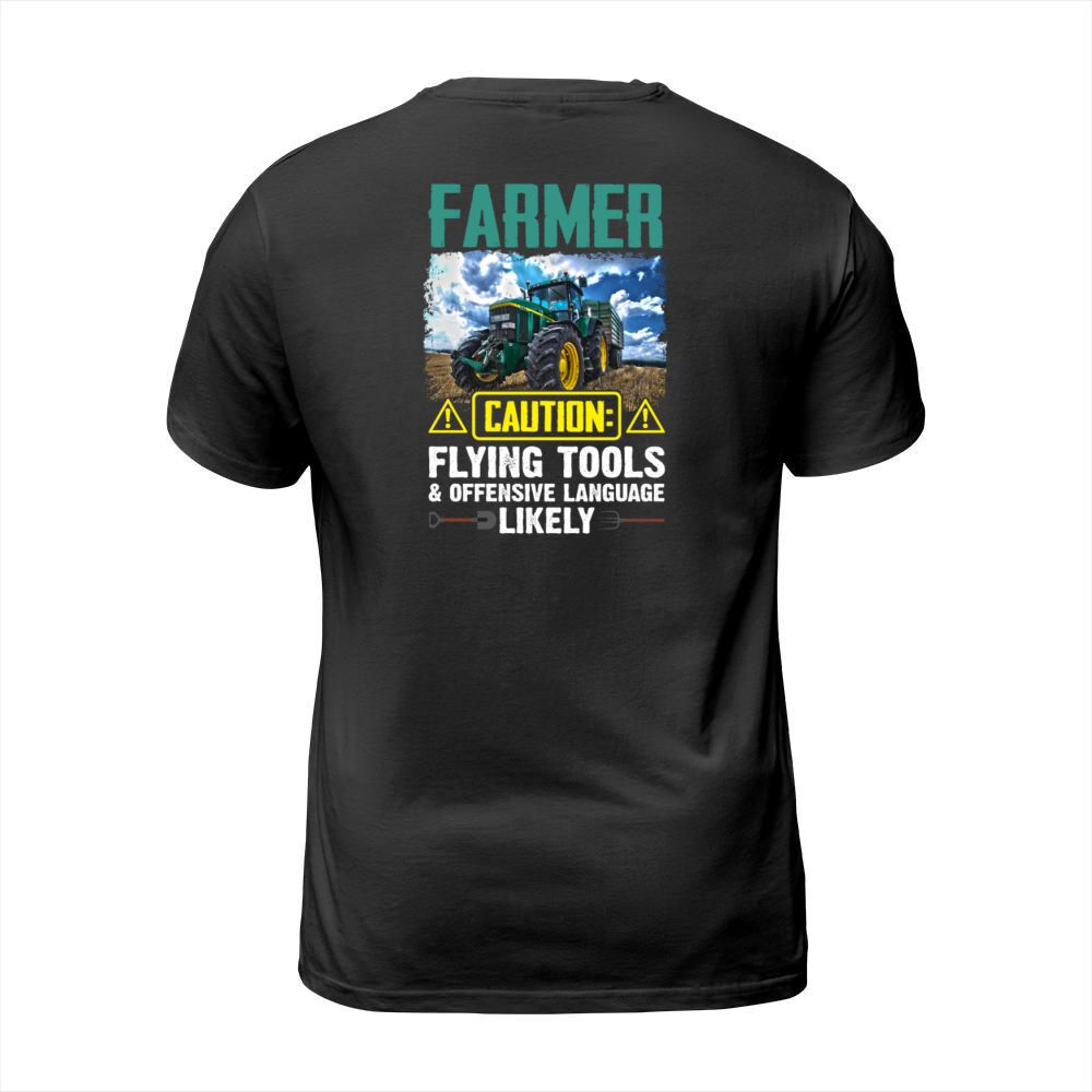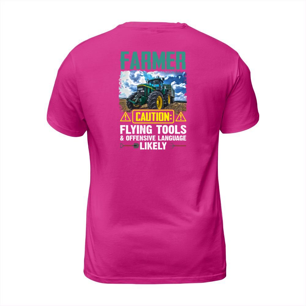 Shop Farmer Caution Flying Tools Offensive Language T-Shirt Unisex custom made just for you. Available on many styles, sizes, and colors.