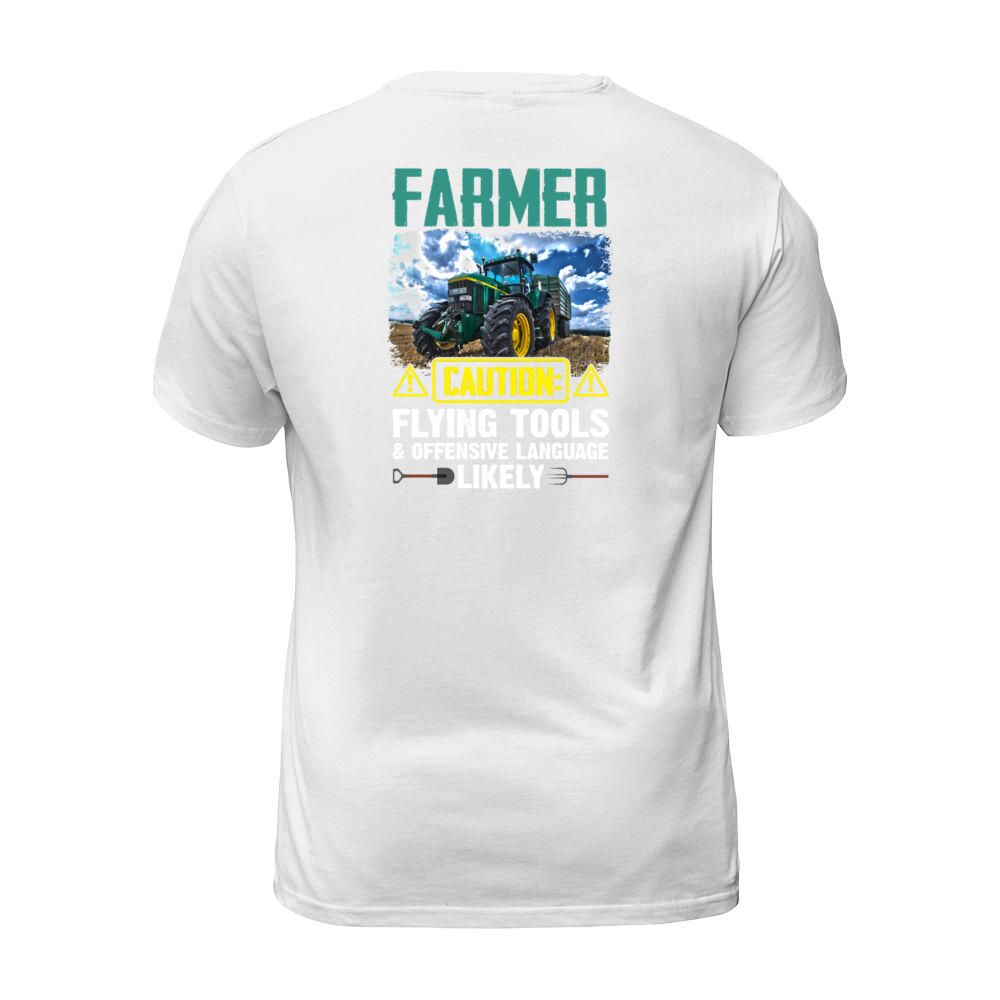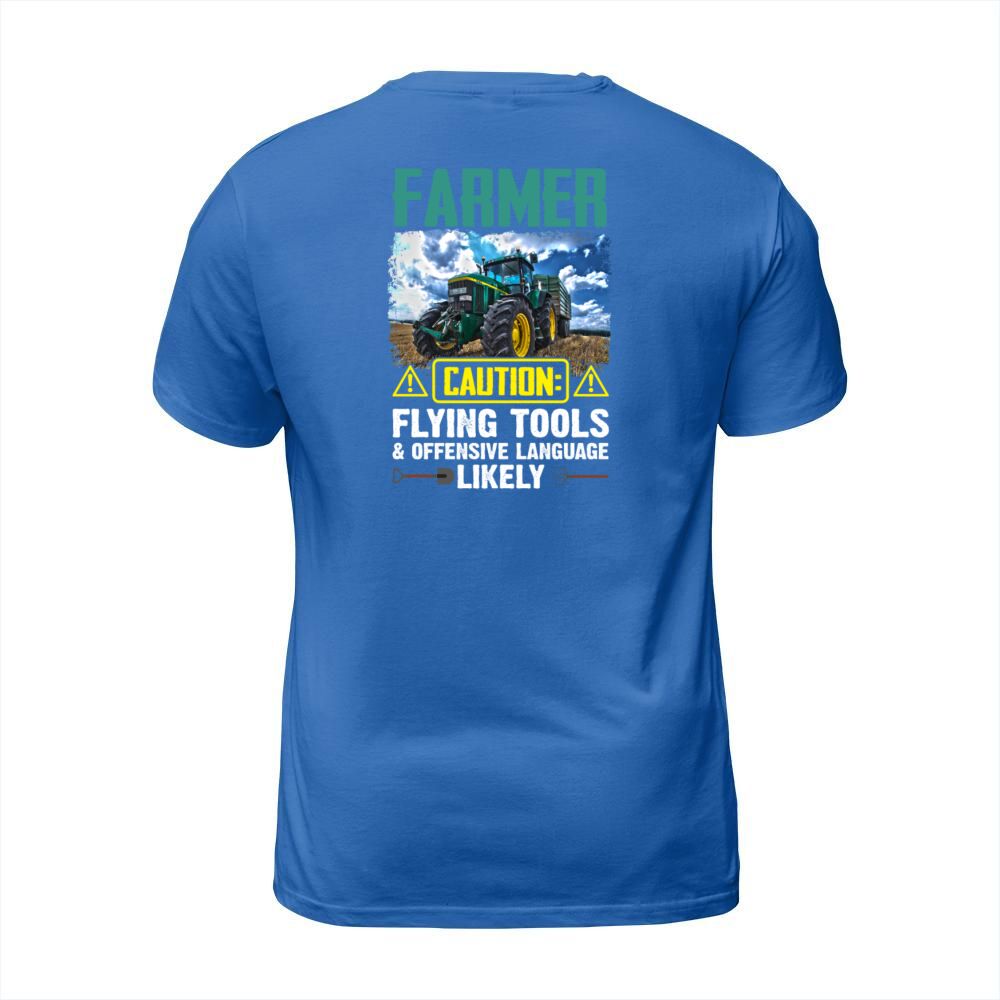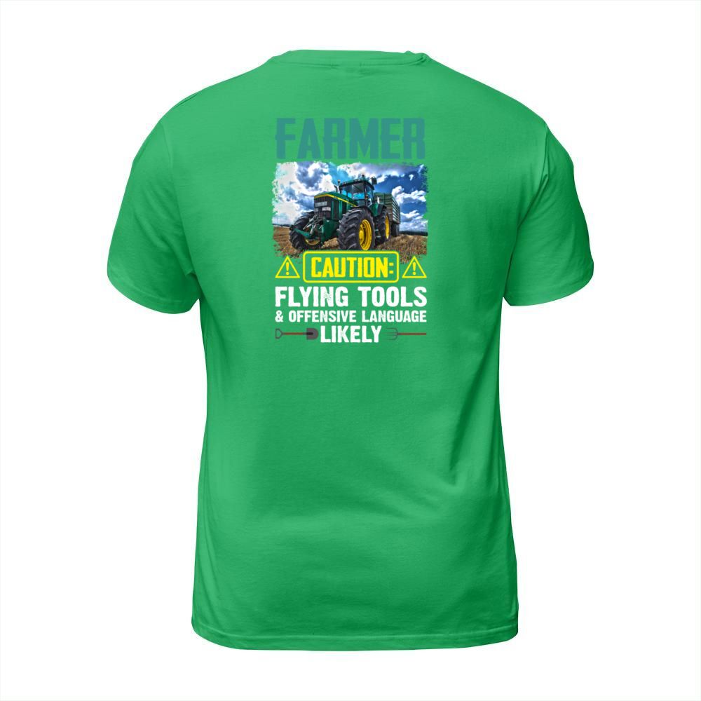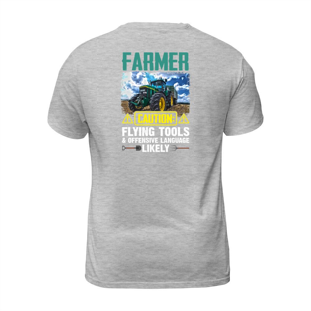 Shop Farmer Caution Flying Tools Offensive Language T-Shirt Unisex custom made just for you. Available on many styles, sizes, and colors.