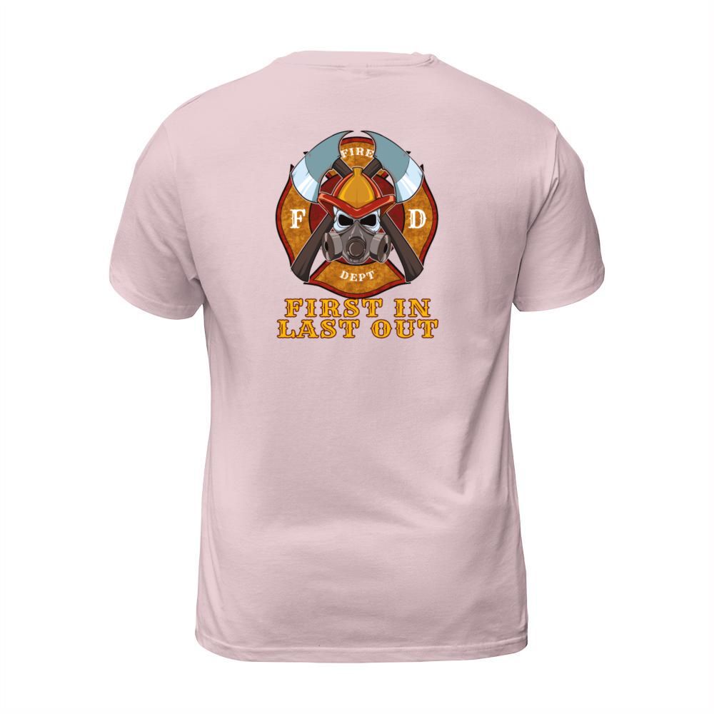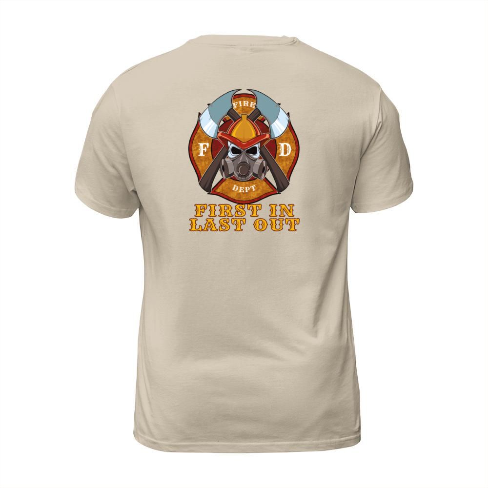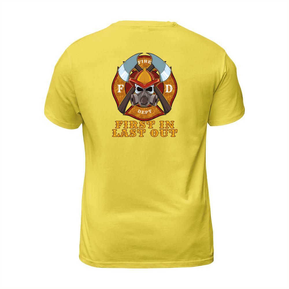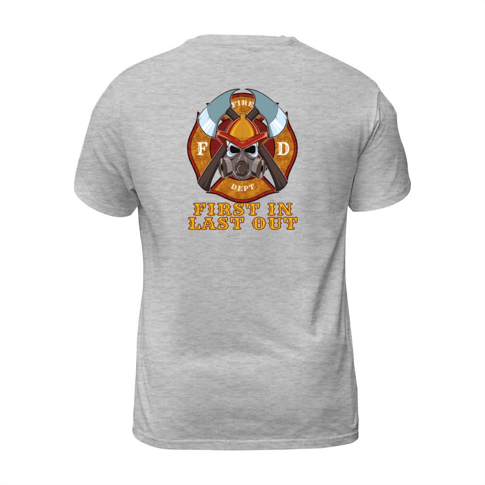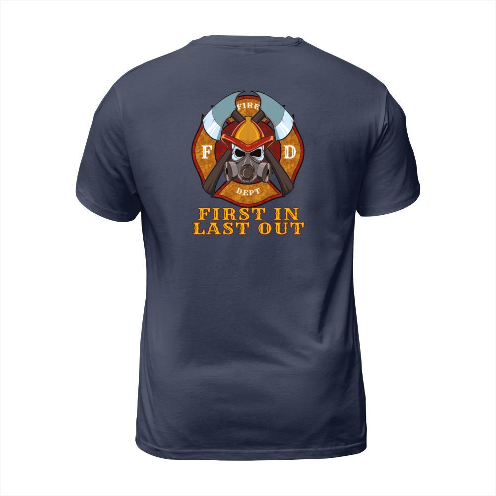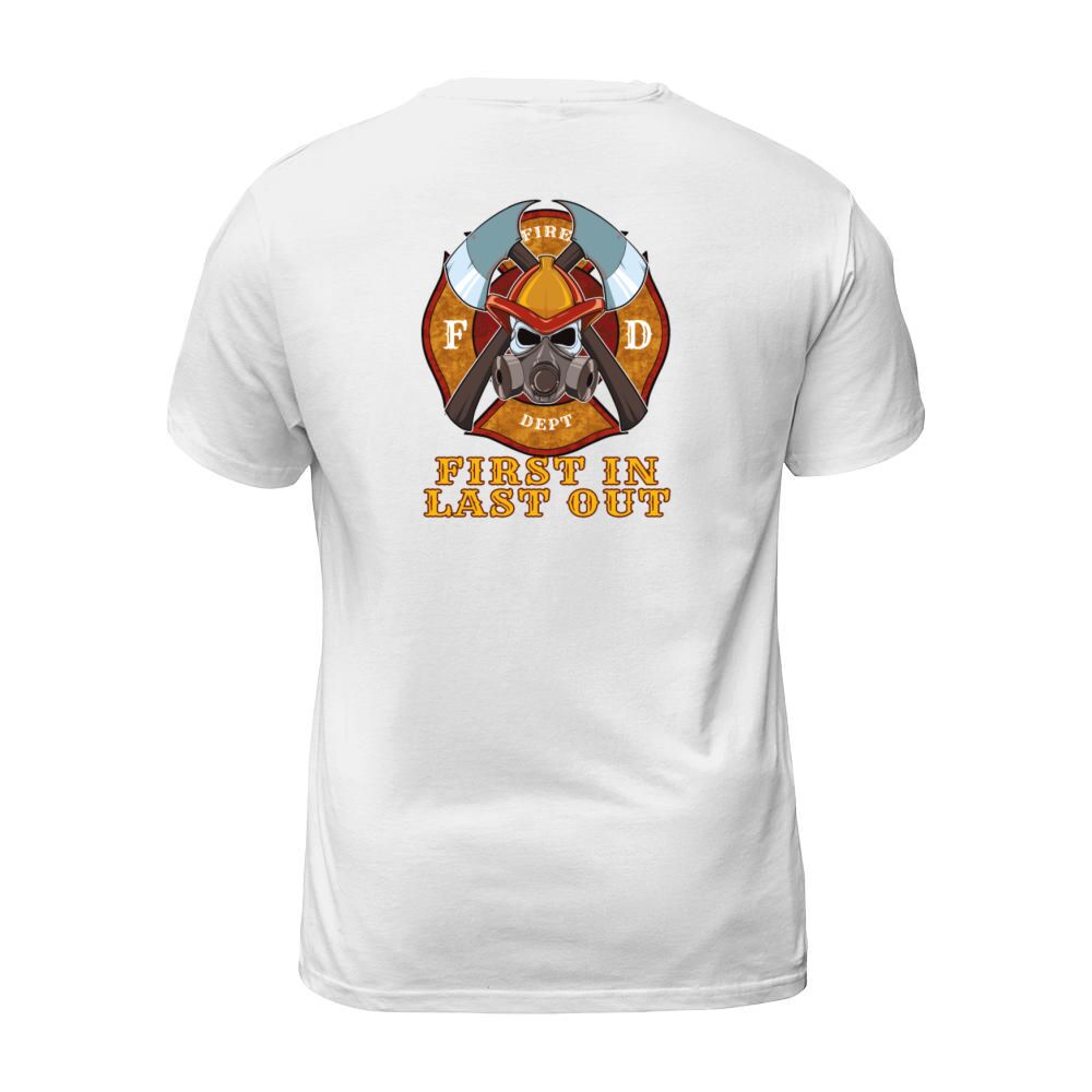 Shop First In Last Out - Firefighter Fire Brigade Hero Men's T-Shirt custom made just for you. Available on many styles, sizes, and colors.