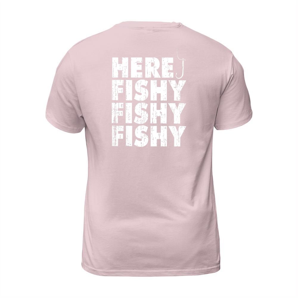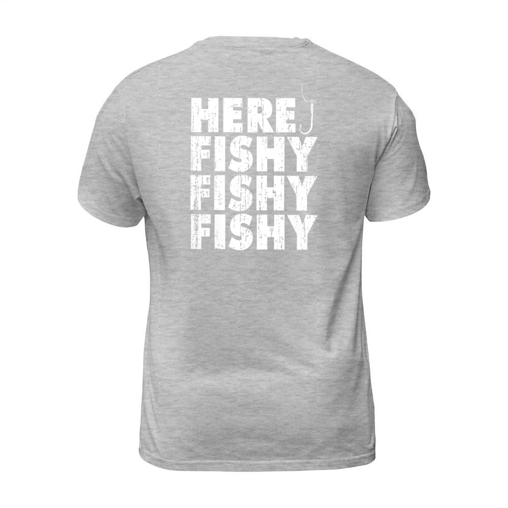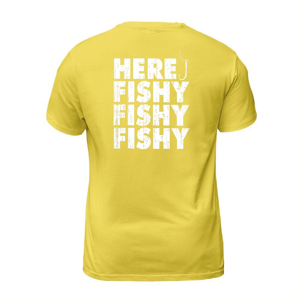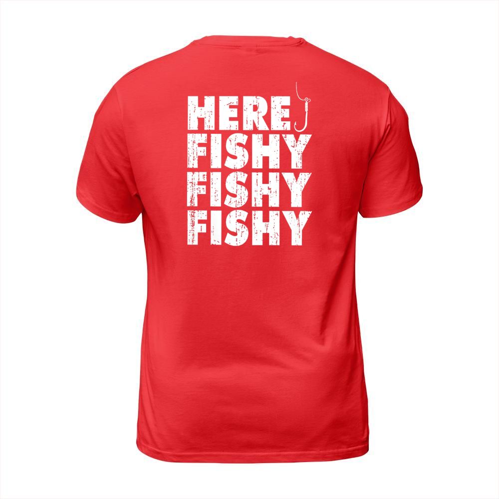 Shop Fishing Here Fishy T-Shirt Unisex custom made just for you. Available on many styles, sizes, and colors.