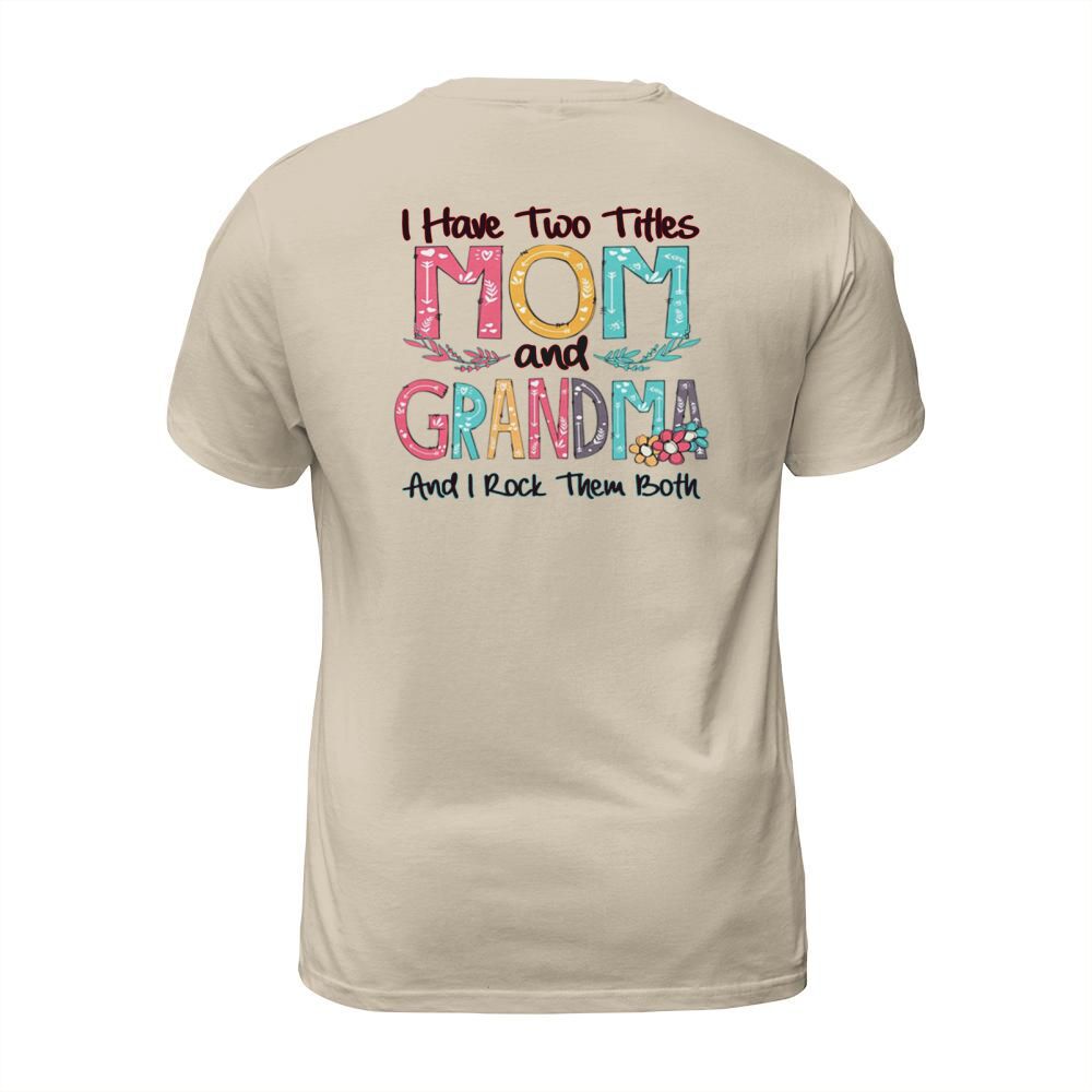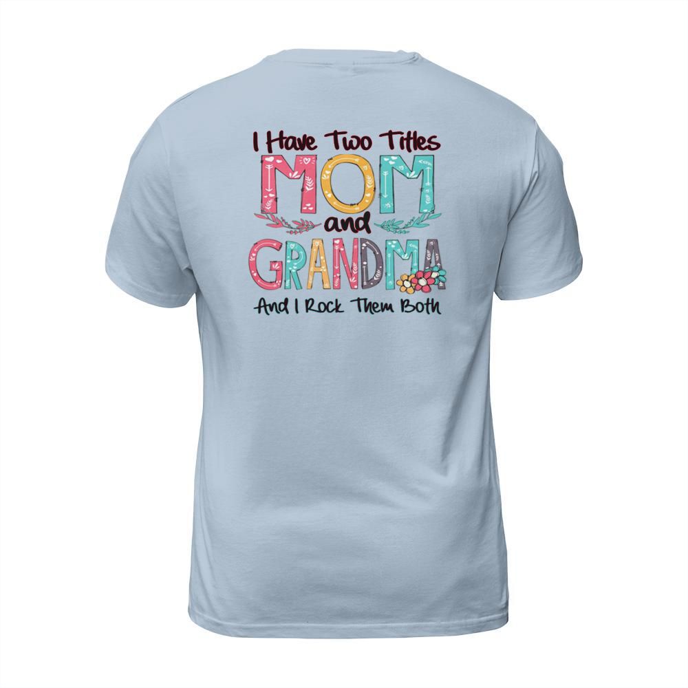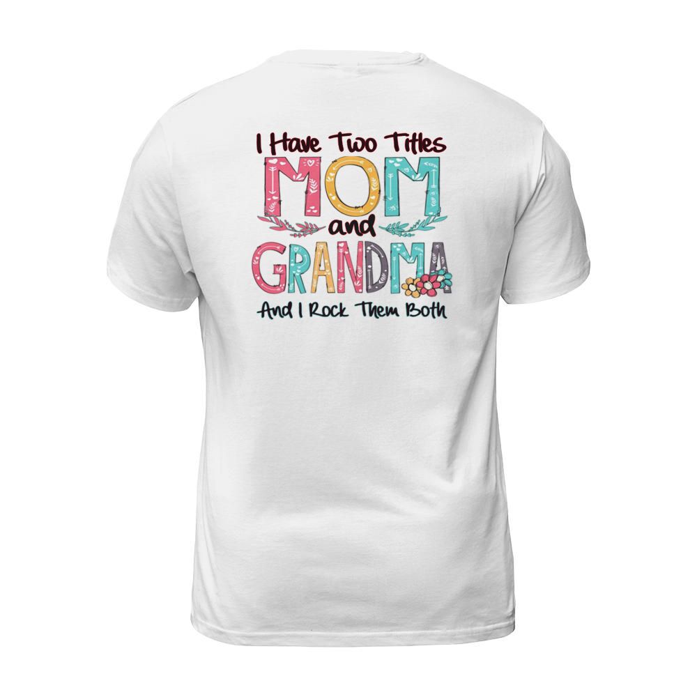 Shop Flower I have two titles mom and Grandma and I rock them both T-Shirt Unisex custom made just for you. Available on many styles, sizes, and colors.