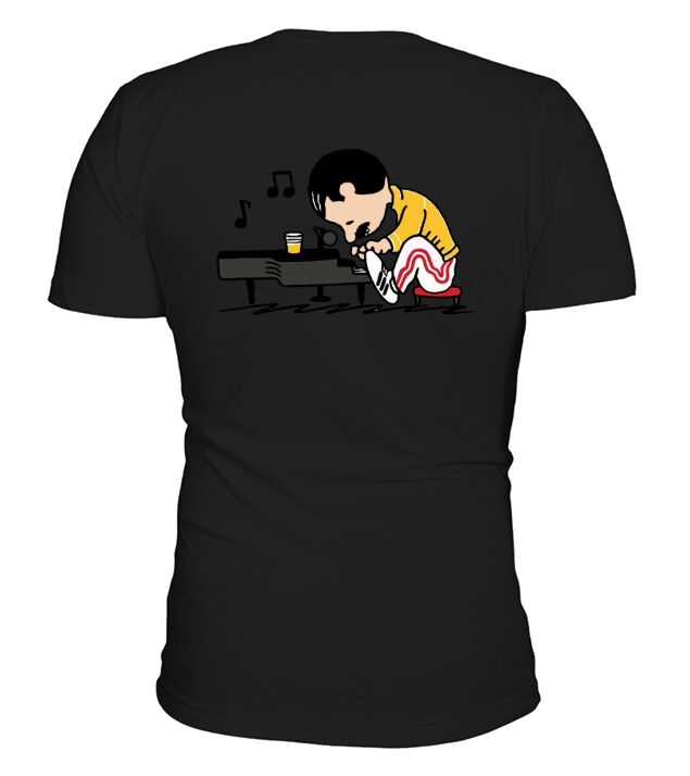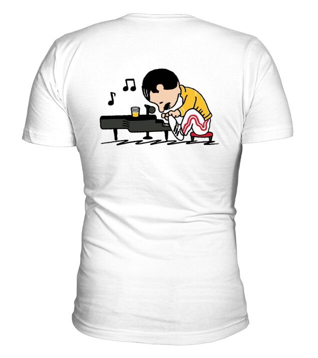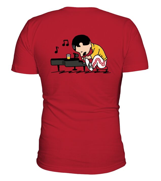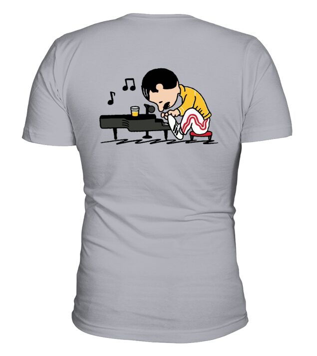 Shop Freddie Mercury in the form of Schroeder playing piano V-Neck T-shirt custom made just for you. Available on many styles, sizes, and colors.