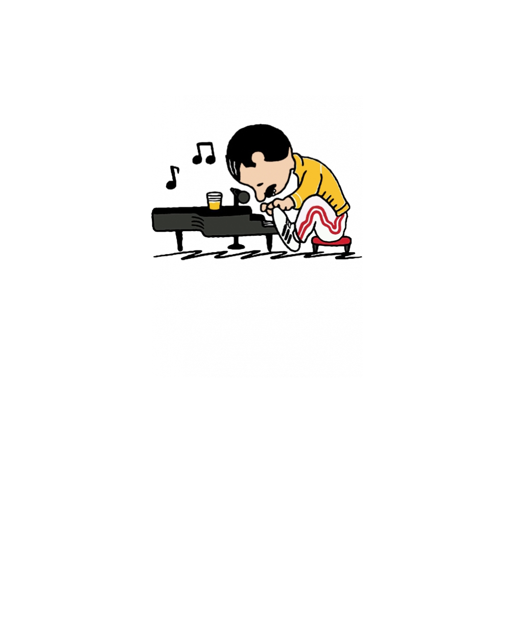 Freddie Mercury in the form of Schroeder playing piano